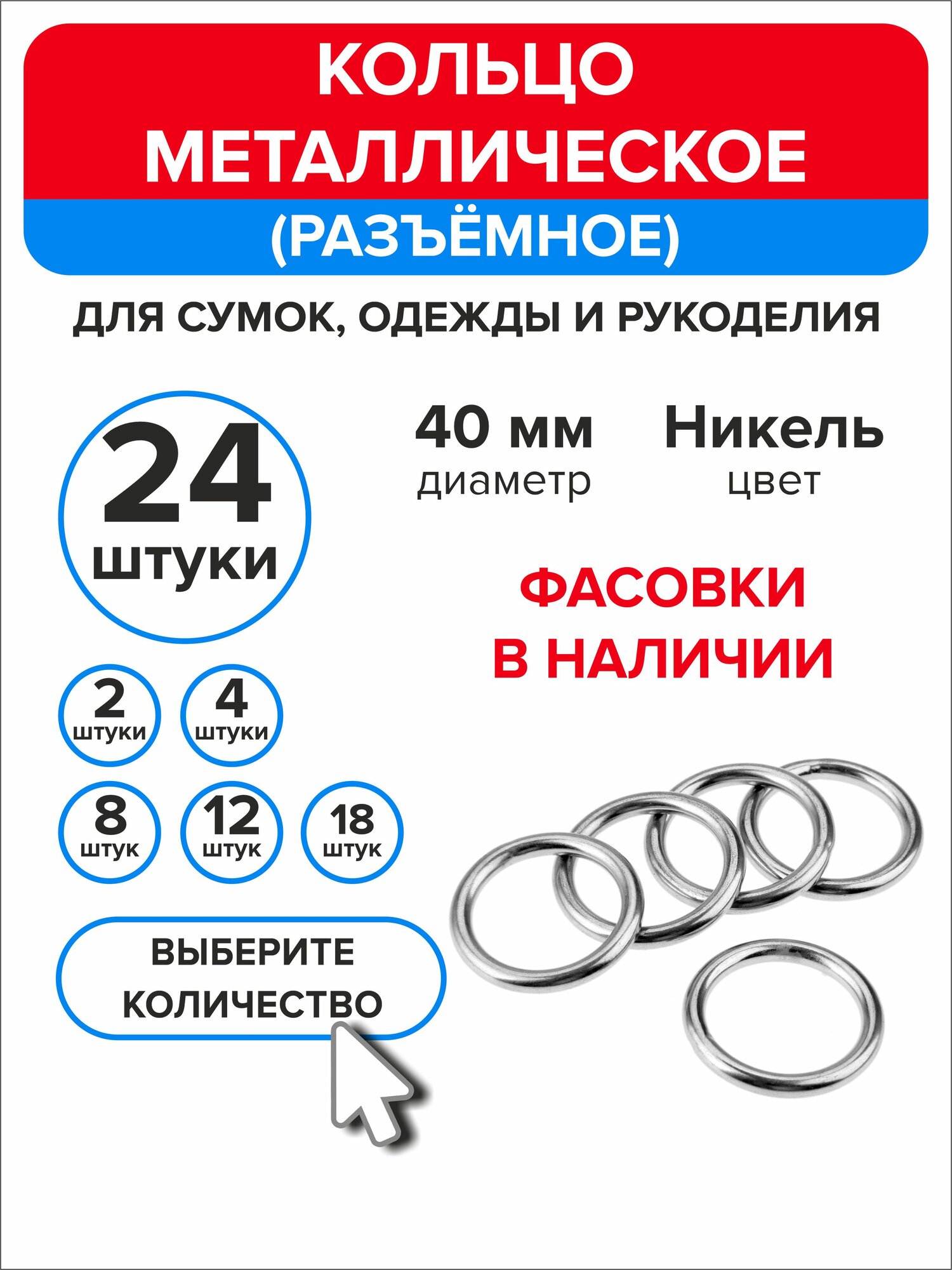 Кольцо для сумок, рукоделия 40 мм, 18 штук