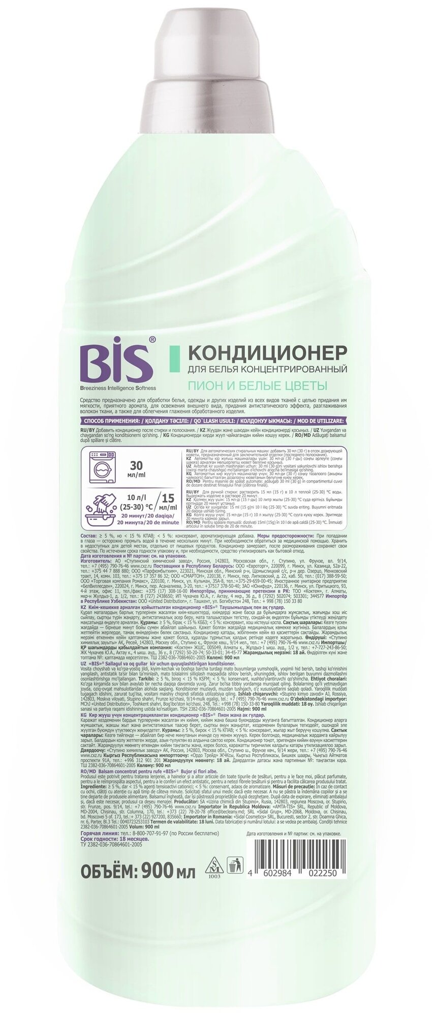 Купить Кондиционер для Белья BIS "Пион И Белые Цветы", Суперконцентрат 900 мл.