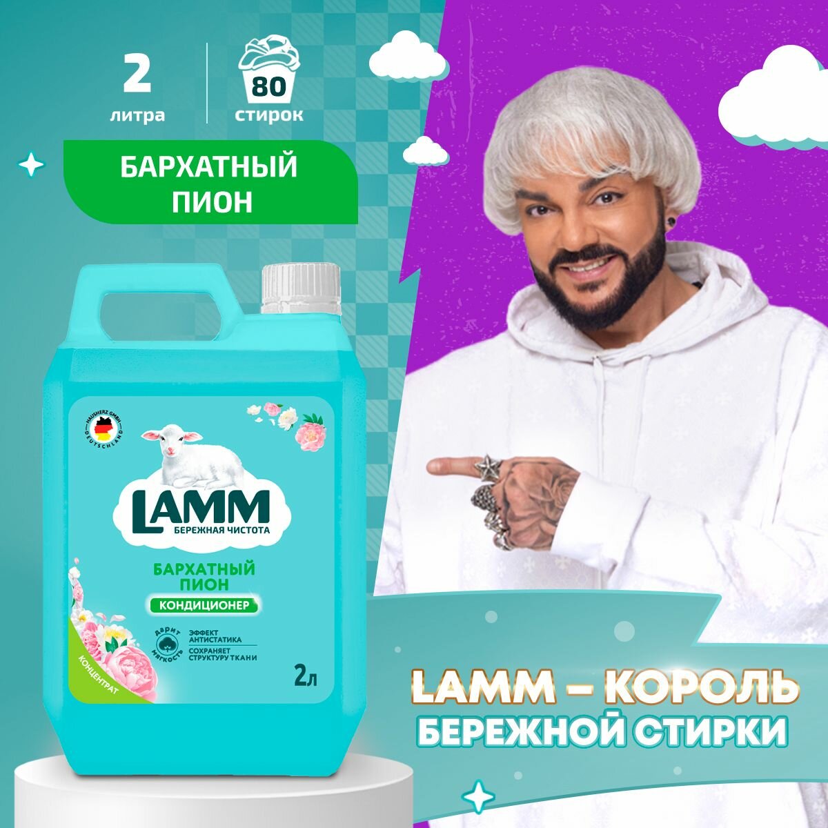 СохранитьКондиционер для белья LAMM "Бархатный пион", универсальный, для всех типов тканей, 80 стирок, 2 л интересное: