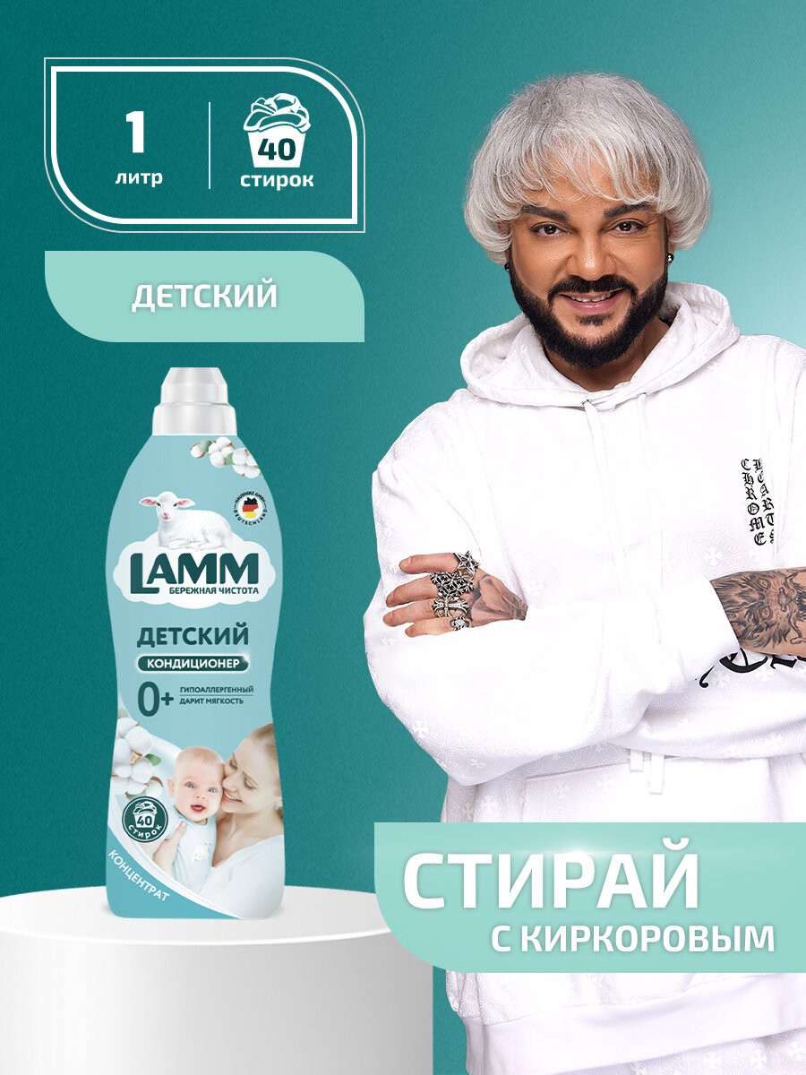 LAMM Нежный Хлопок Кондиционер Детский для Белья Универсальный, Бесфосфатный, 910 мл