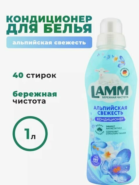 Кондиционер ополаскиватель для белья LAMM Альпийская свежесть 1 л, концентрат, 40 стирок, универсальный, 1 литр, для всех типов белья