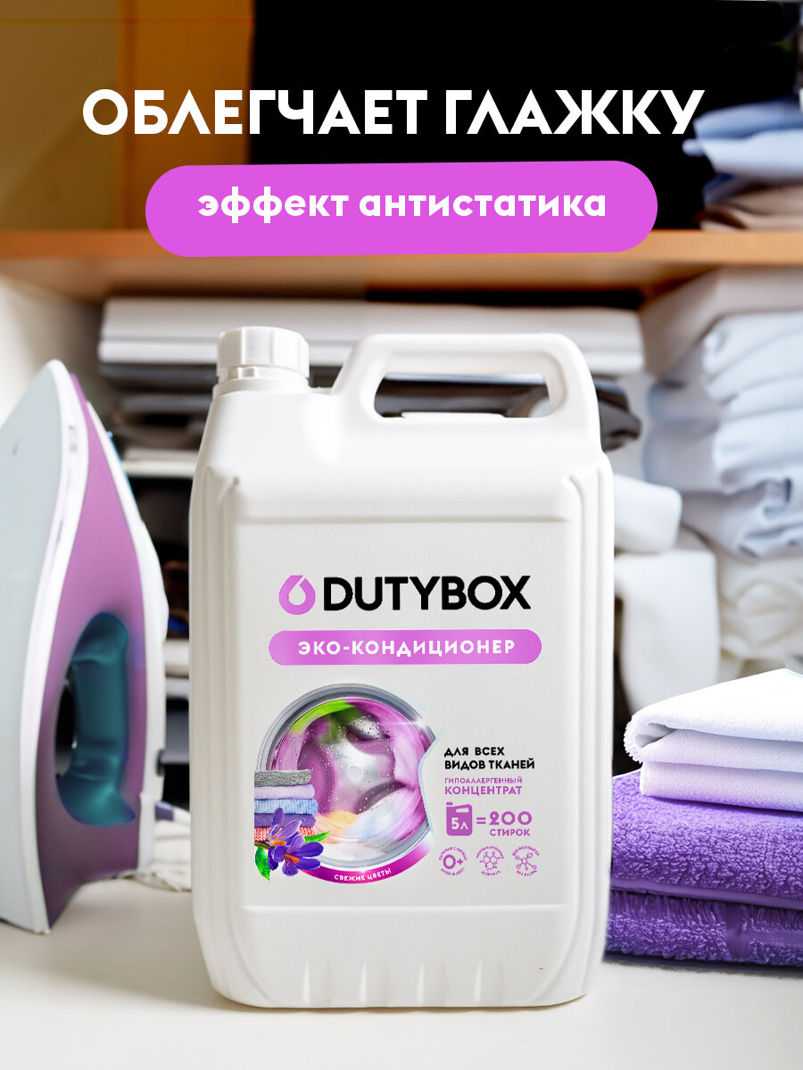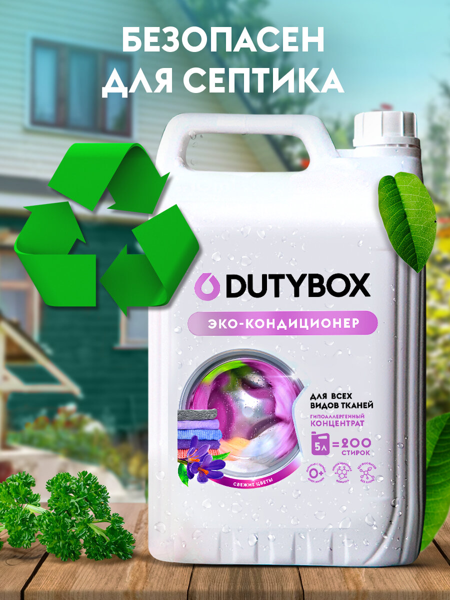 Купить Кондиционер для белья DUTYBOX Свежие цветы 5л, 200 стирок, гипоаллергенный, для всех типов белья