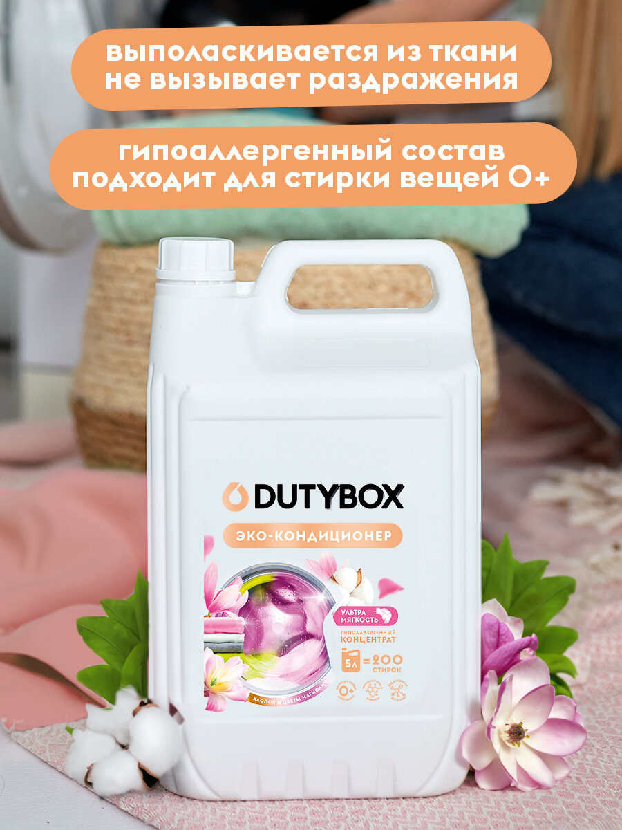 Купить Кондиционер-ополаскиватель для белья DUTYBOX Хлопок и цветы магнолии 5л, 200 стирок