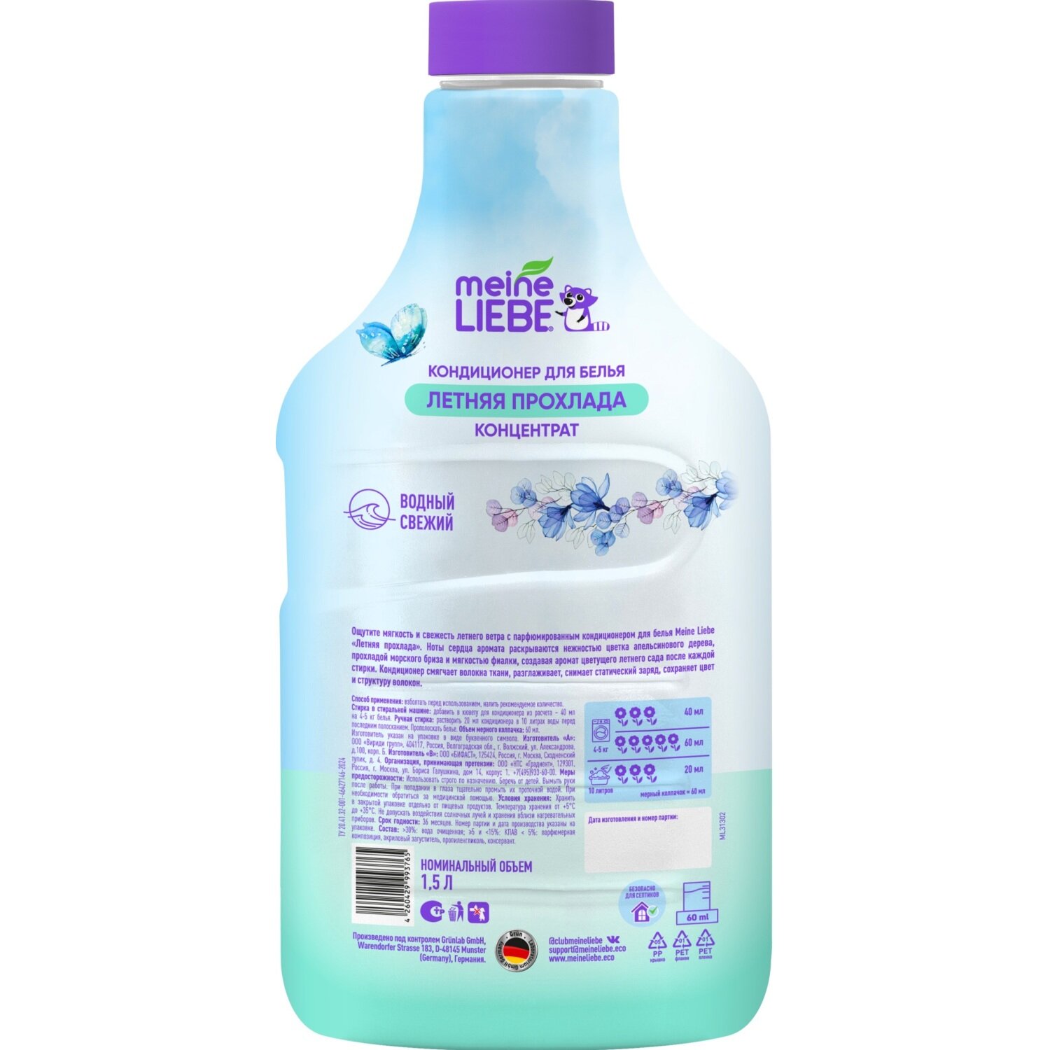Парфюмированный кондиционер ополаскиватель Meine Liebe Летняя прохлада, 1500 мл. интересное: