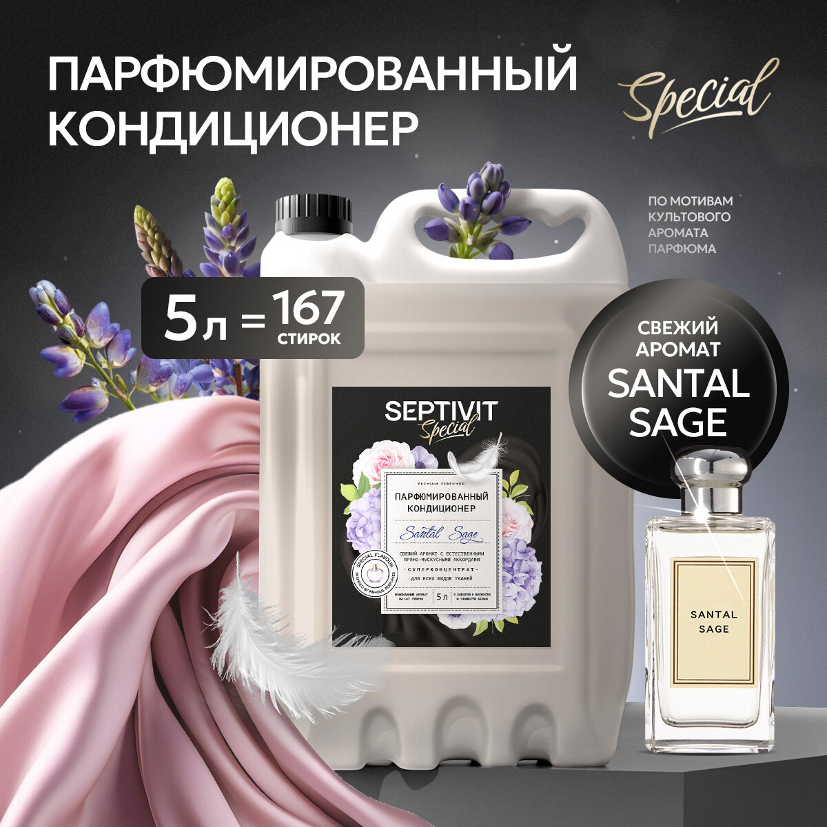 Кондиционер для белья Septivit Special Santal Sage, канистра, парфюмированный, универсальный, 1л