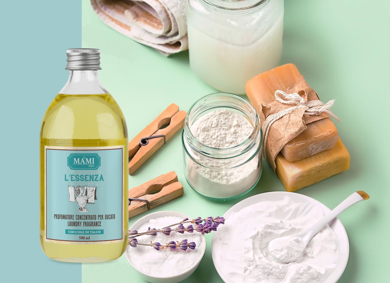 MAMI MILANO Парфюмированная эссенция для стирки COCCOLE DI TALCO / Пудровые объятия, 500 мл интересное: