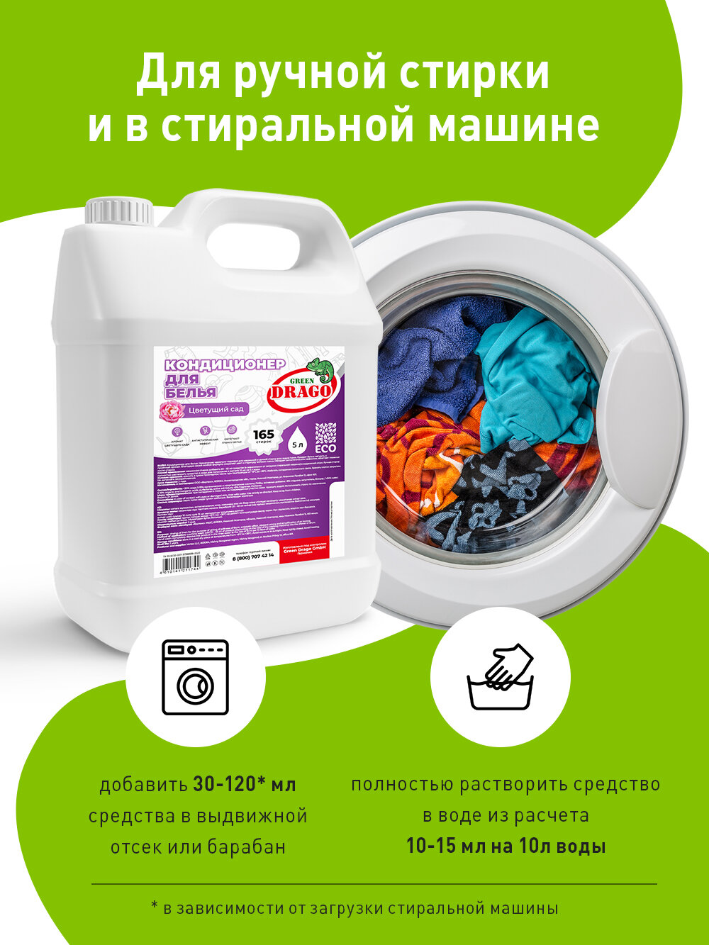 Кондиционер для белья 5л, Green Drago, Цветущий сад, концентрат интересное: