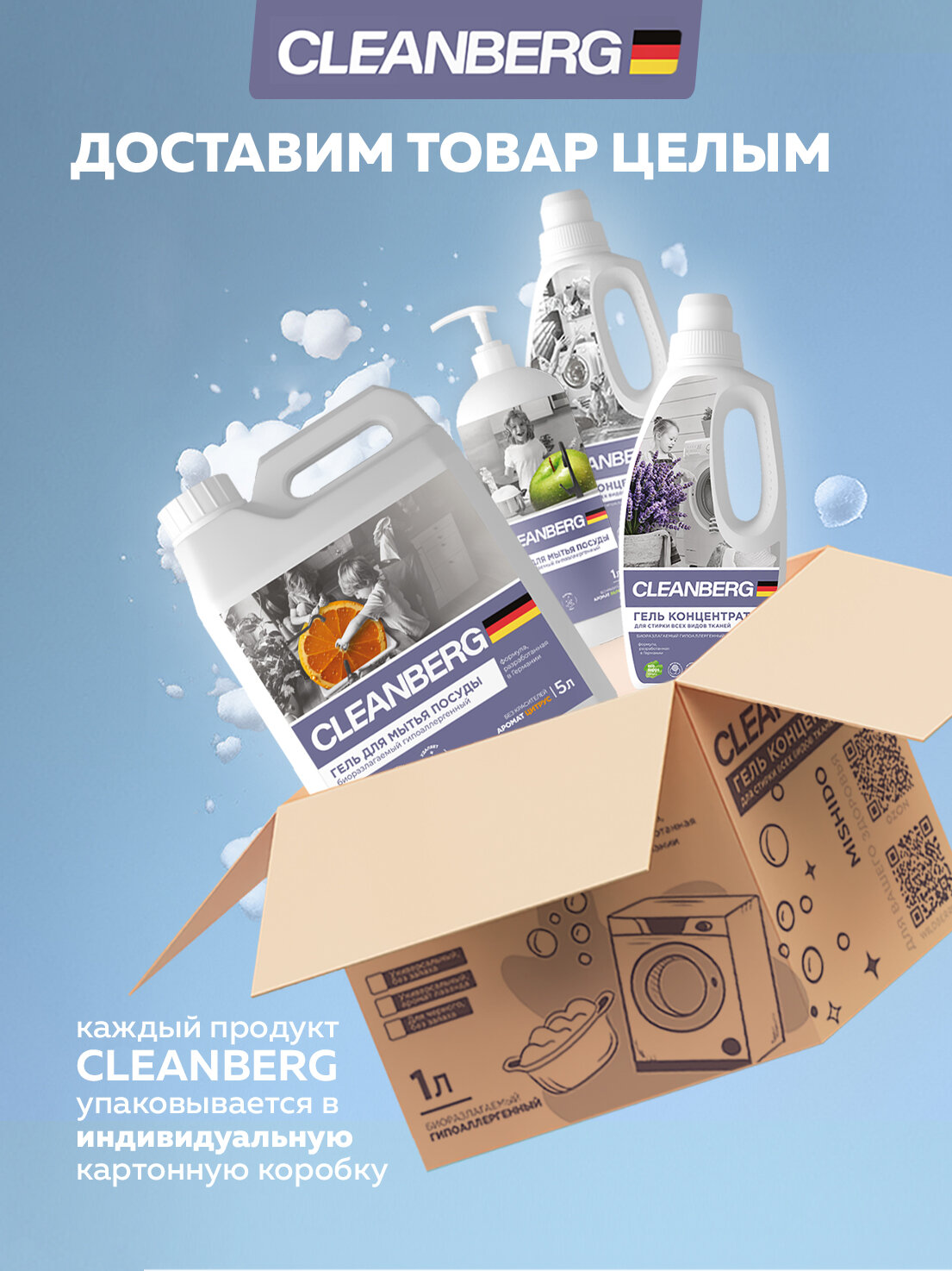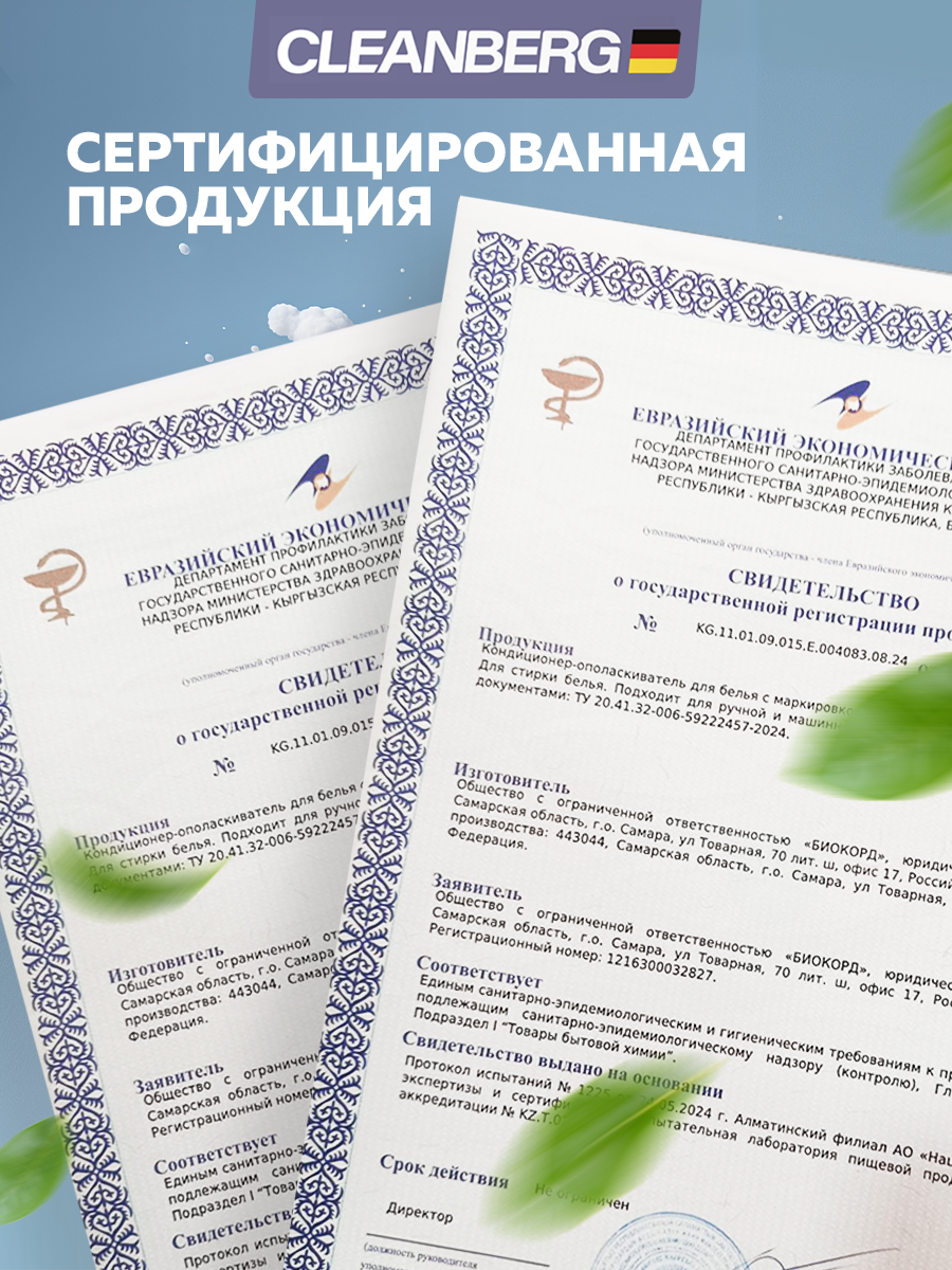 Кондиционер для белья CLEANBERG "Свежесть" ополаскиватель для белья гипоаллергенный 1л