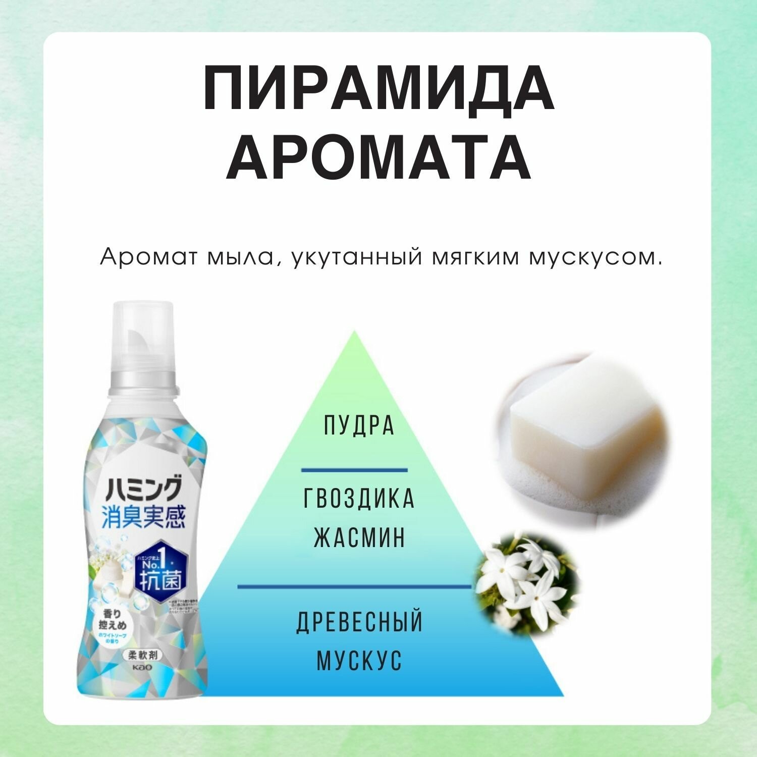 KAO Кондиционер-ополаскиватель для белья, с антибактериальным эффектом, с нежным ароматом цветочного мыла Humming Feeling White Soap, сменная упаковка 380 мл