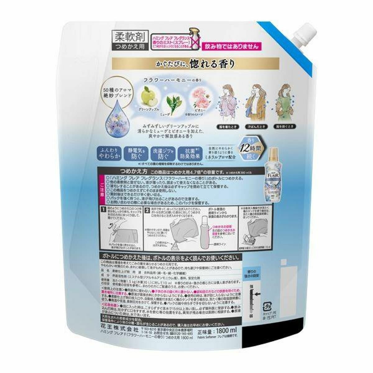 KAO Кондиционер-ополаскиватель "Humming" для белья (концентрат, тёплый аромат цветочного букета) 1800 мл, мягкая упаковка с крышкой