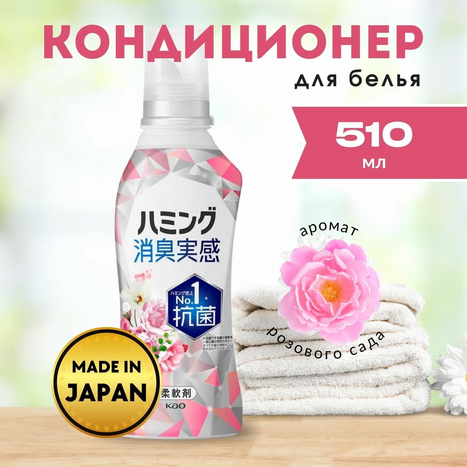 Кондиционер для белья с антибактериальным и дезодорирующим эффектом КAO "Humming" аромат розы с ягодным акцентом, 380 мл.