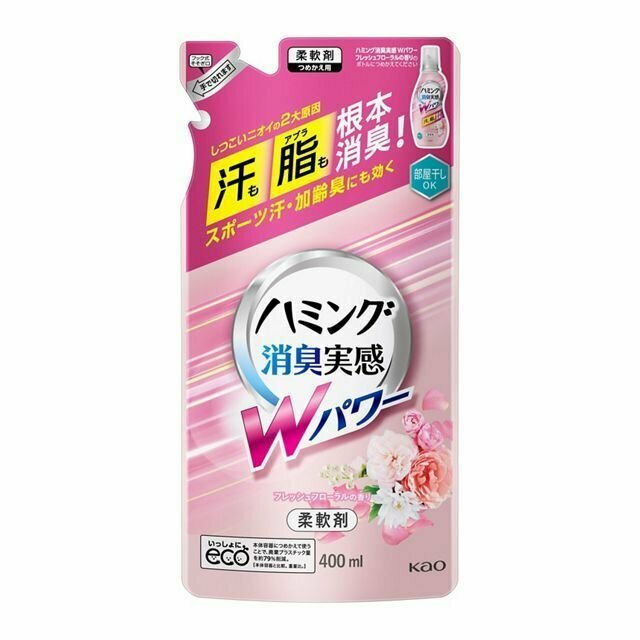 KAO Кондиционер-ополаскиватель "Humming" для белья (концентрат, для активных людей, аромат Брызги роз) 420 мл, мягкая упаковка