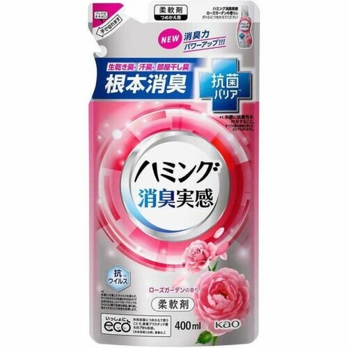 KAO Кондиционер для белья Humming Fine с двухэтапным освежающим и антибактериальным эффектом, аромат розового сада, 400 мл