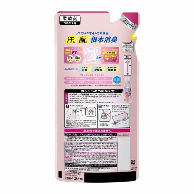 Kao Humming W Power Fresh Floral Кондиционер-ополаскиватель для белья с антибактериальным и дезодорирующим эффектом со свежим цветочным ароматом 1400 мл в мягкой упаковке