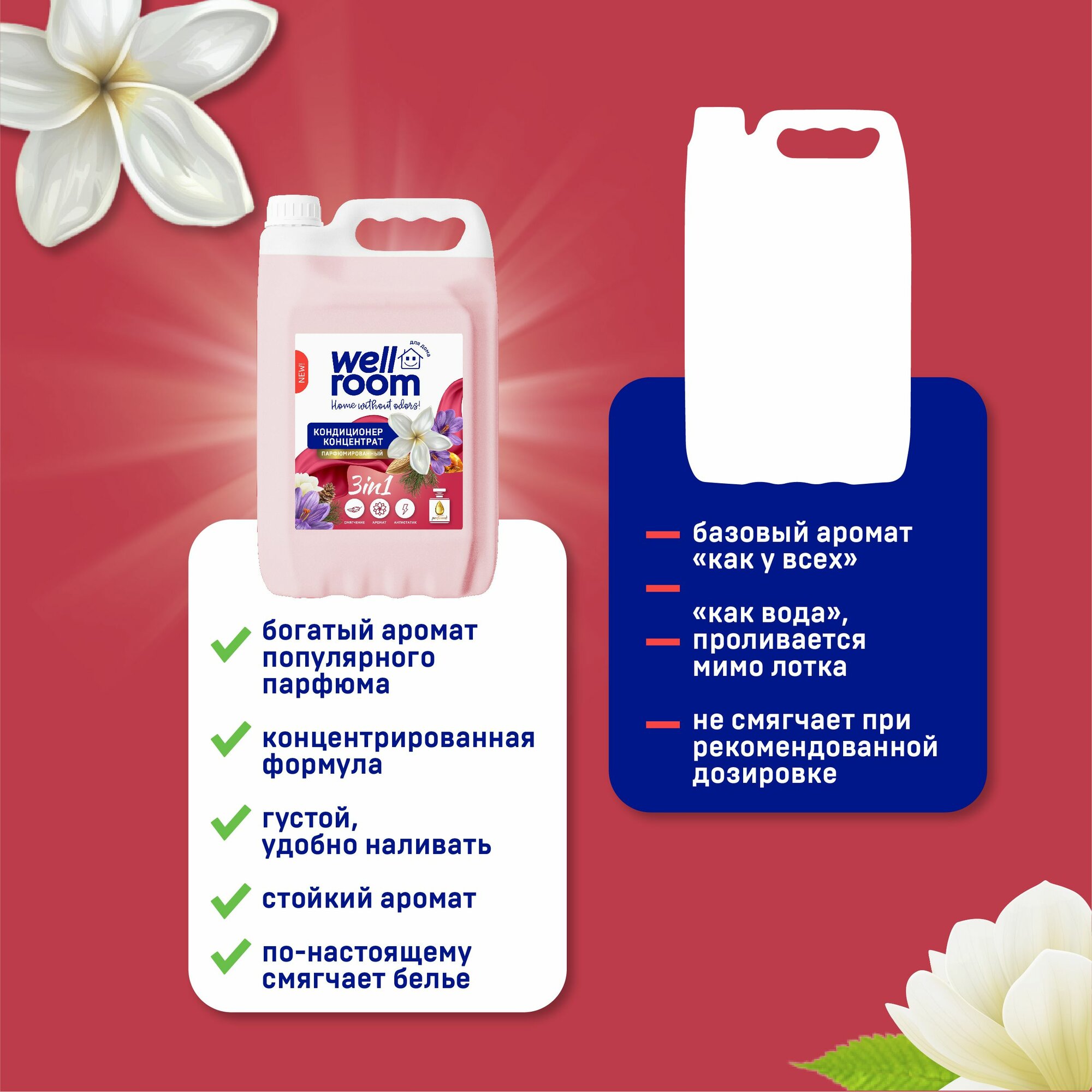 Парфюмированный кондиционер для белья Wellroom, концентрат 5 л интересное: