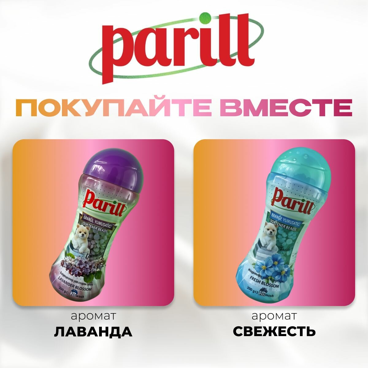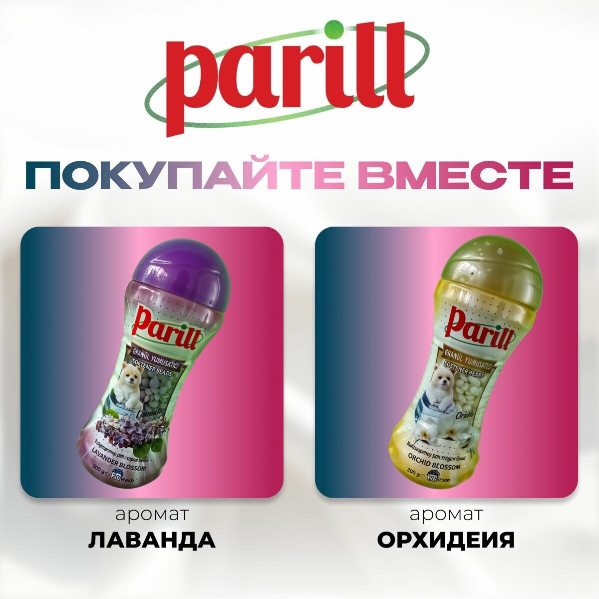 Кондиционер для белья парфюмированный Parill, 2шт по 200г, в гранулах, 40 стирок