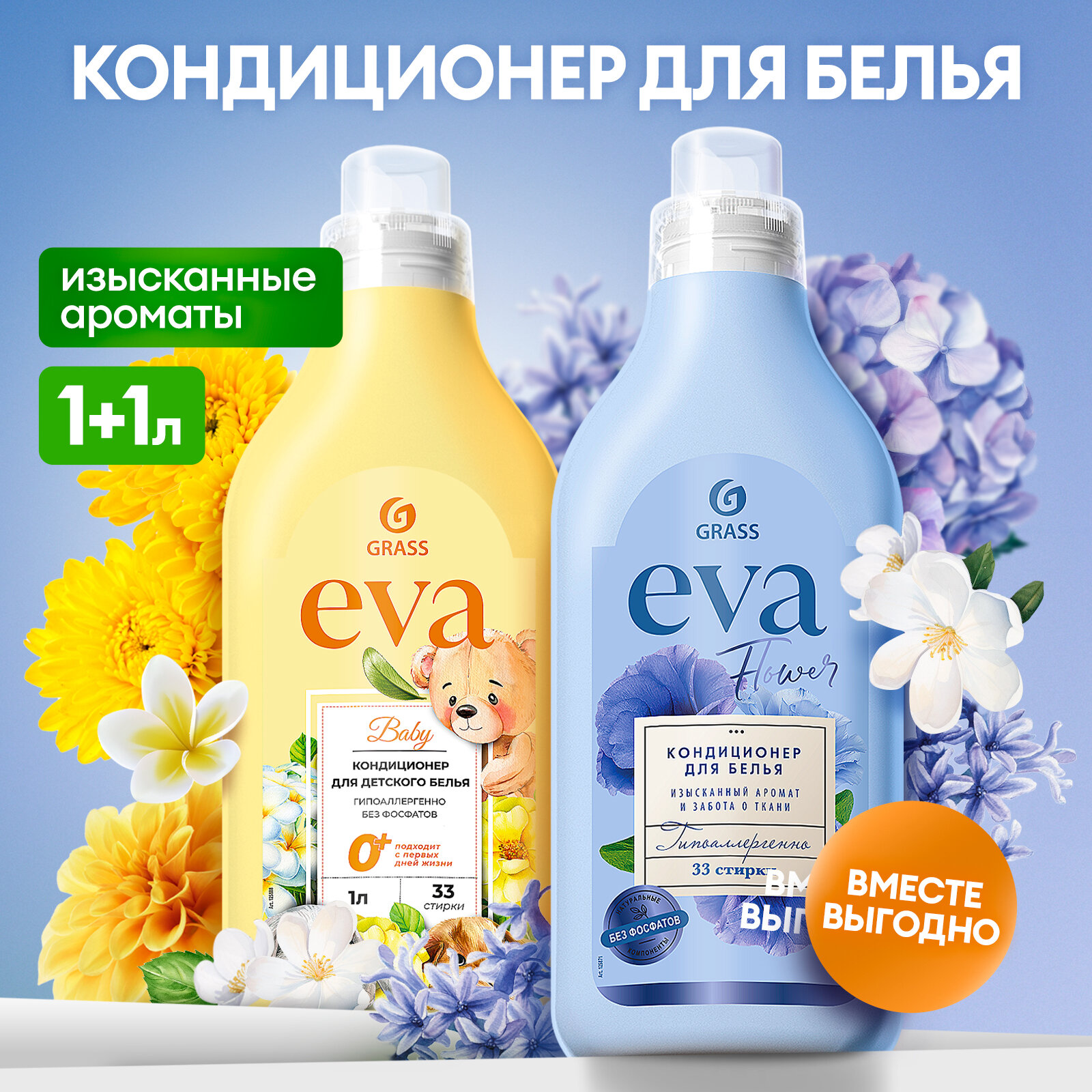 Купить Кондиционер для белья Grass EVA flower 1 л.+ Кондиционер для белья Grass EVA baby детский 1 л.