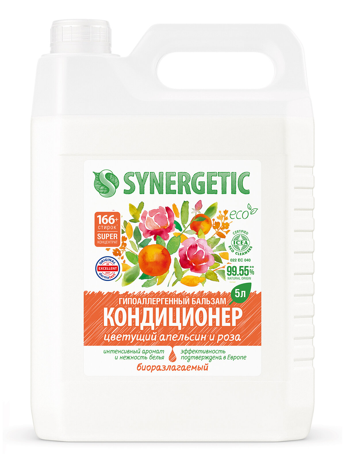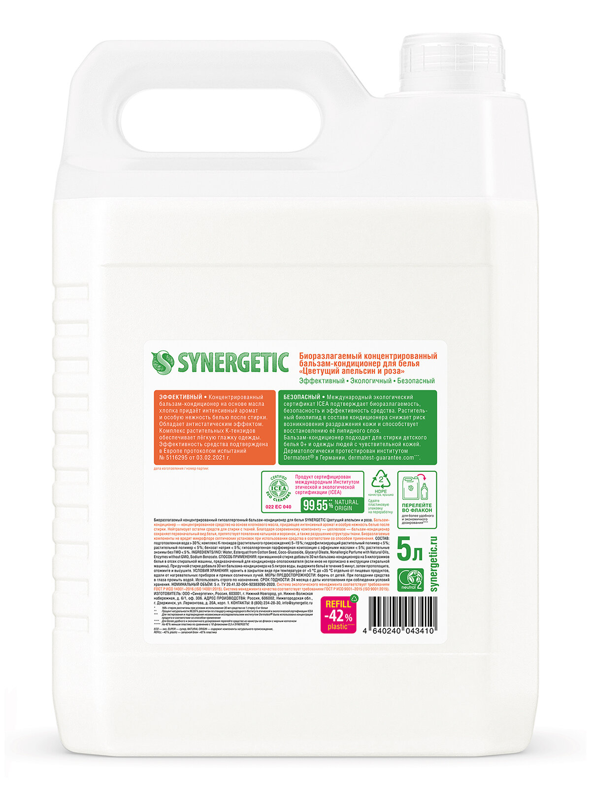 Кондиционер для белья парфюмированный SYNERGETIC "Цветущий апельсин и роза", 5 л (166+ стирок) интересное: