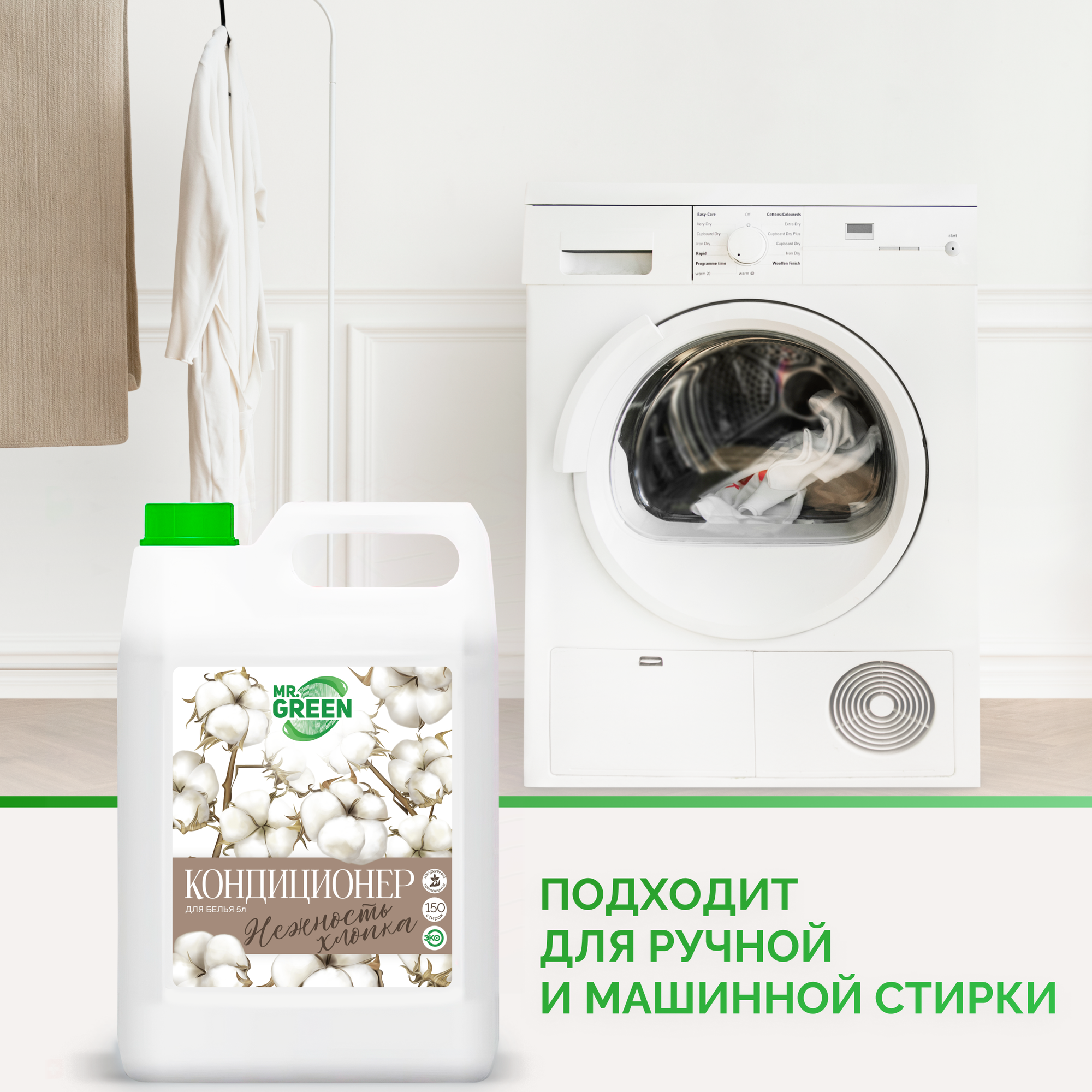 Кондиционер-ополаскиватель для стирки белья 5 литров Нежность Хлопка / Mr. Green интересное:
