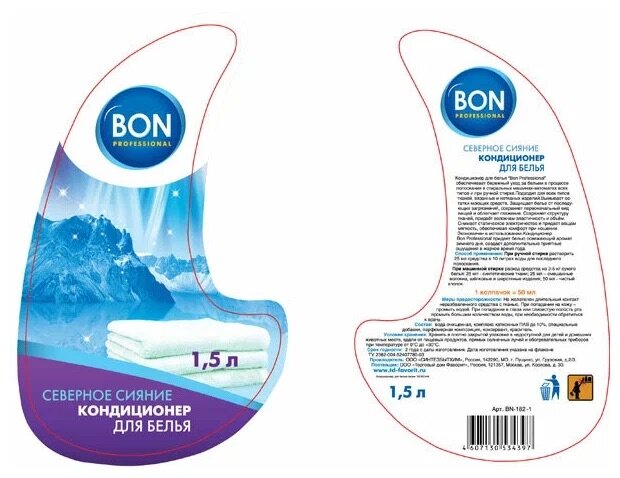 Кондиционер для белья Bon BN-182-1 "Северное Сияние" 1500мл. Ополаскиватель - Концентрат интересное: