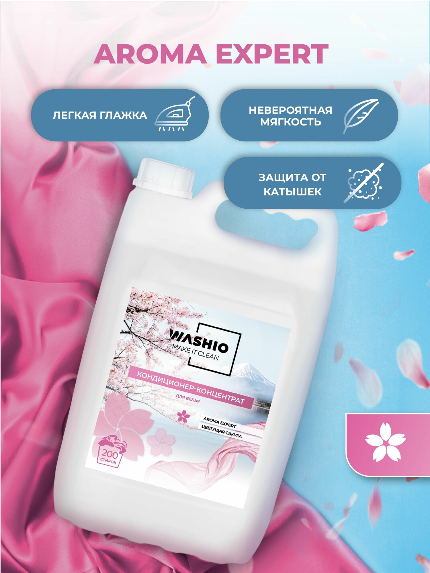 Кондиционер-концентрат для белья 5л WASHIO Aroma Expert Цветущая Сакура интересное: