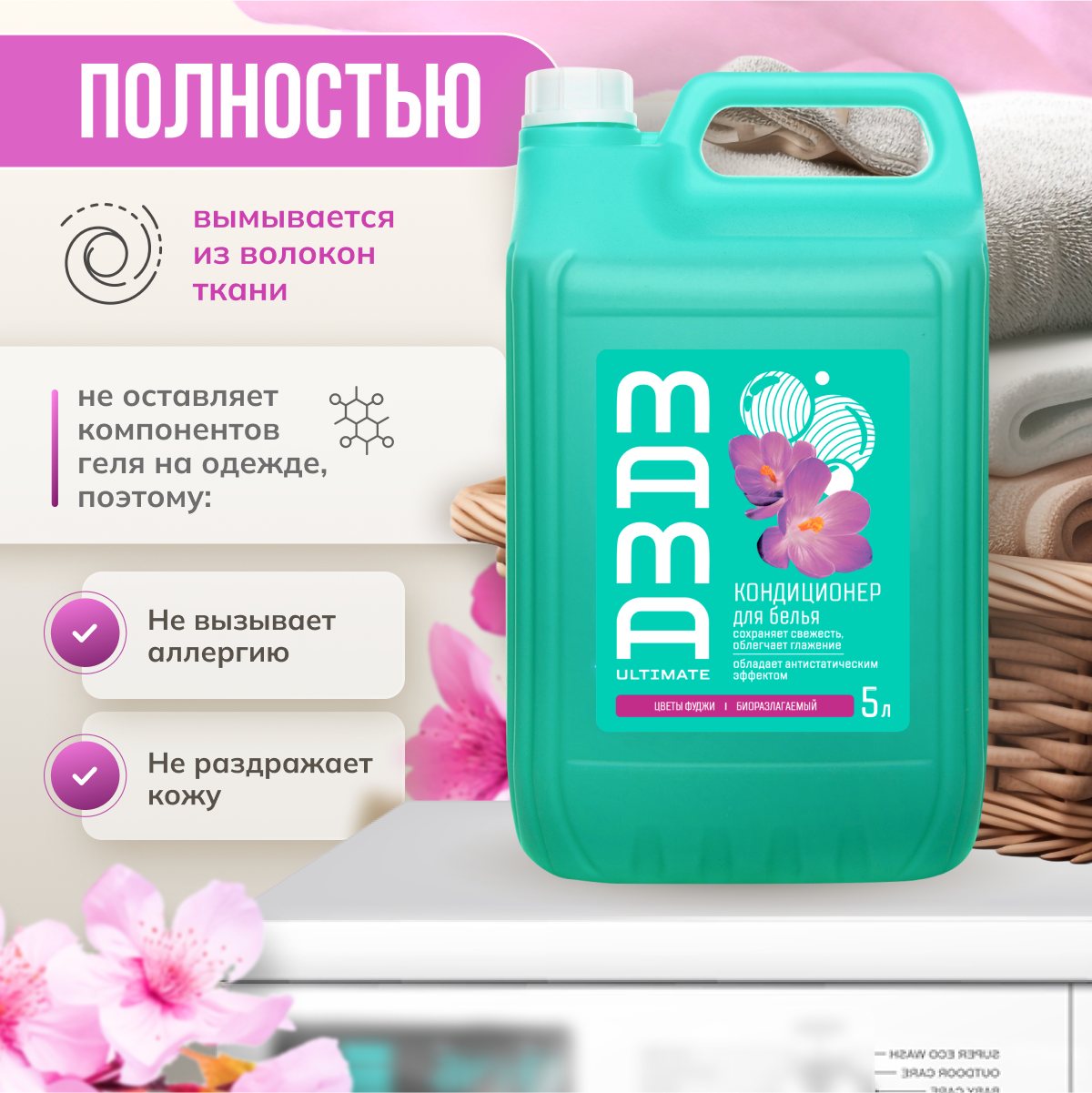 Кондиционер для белья антистатический Mama Ultimate Цветы Фуджи, 5 л интересное: