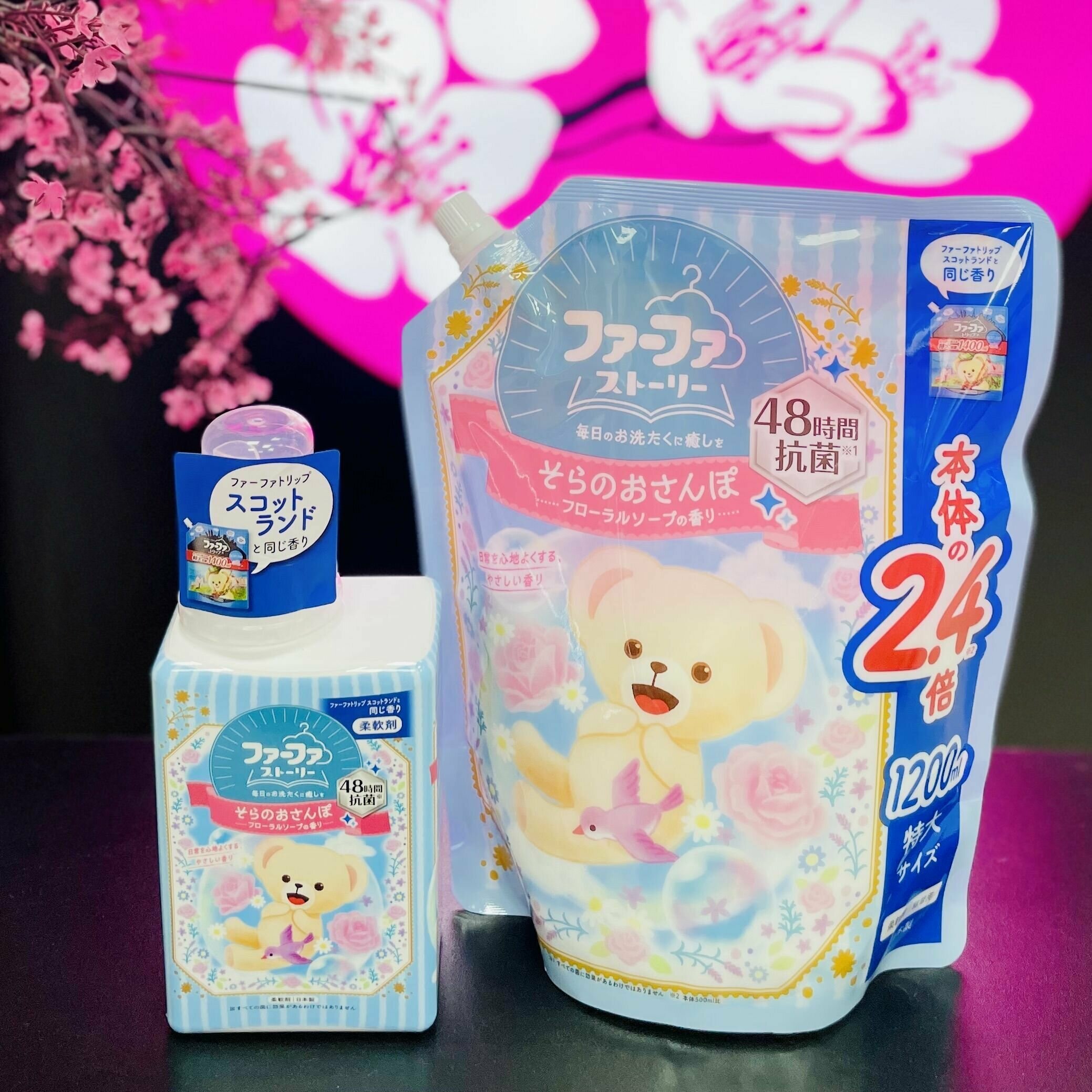 Nissan FaFa Лимитированный кондиционер для белья "Прогулка в облаках" Story Sky Walk, аромат мыла и трав, (улучшенный аромат) бутылка в форме медведя 500 мл.