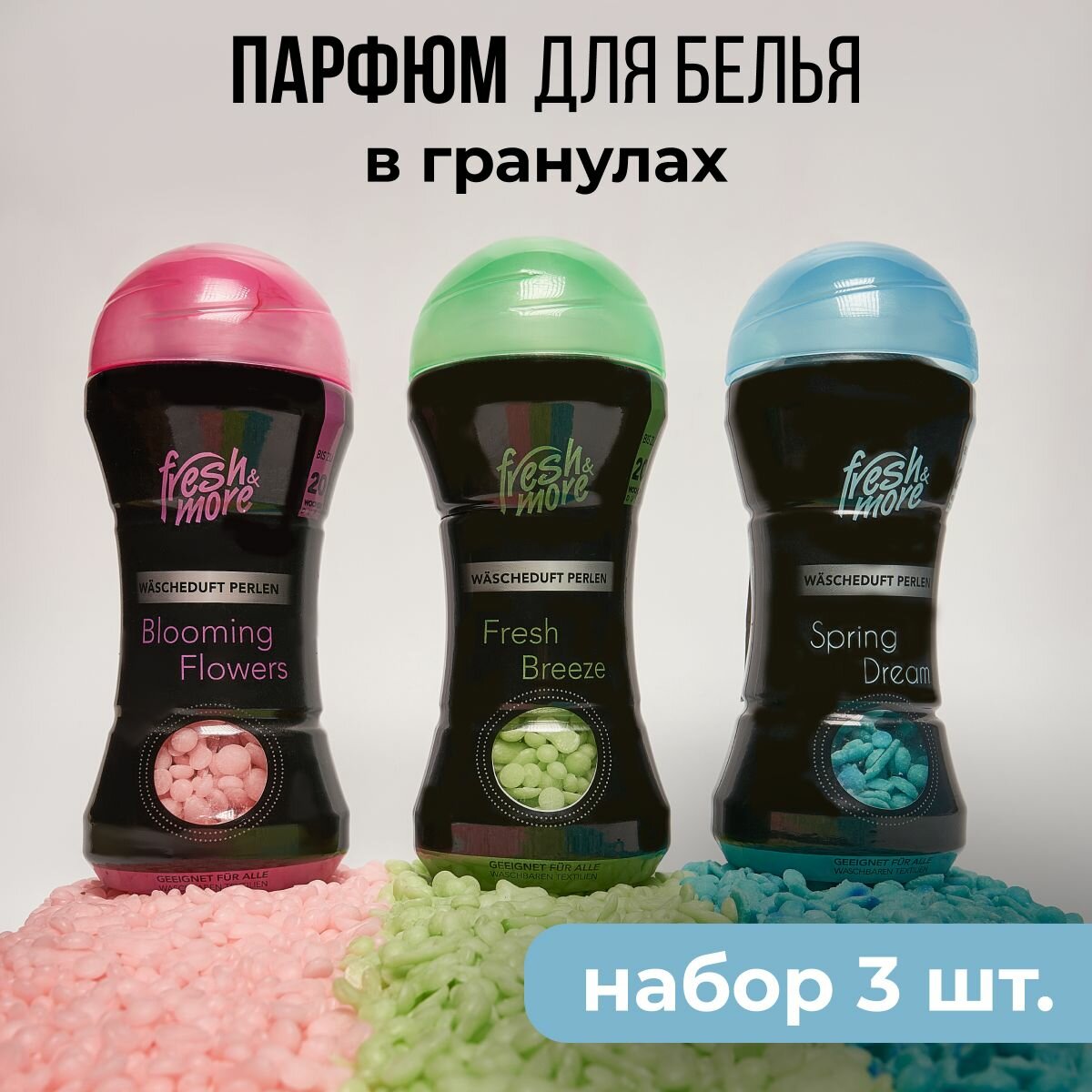Кондиционер парфюм для стирки белья в гранулах Fresh&More набор 3 шт , гранулированный сухой парфюмированный ополаскиватель, Германия 630 гр интересное: