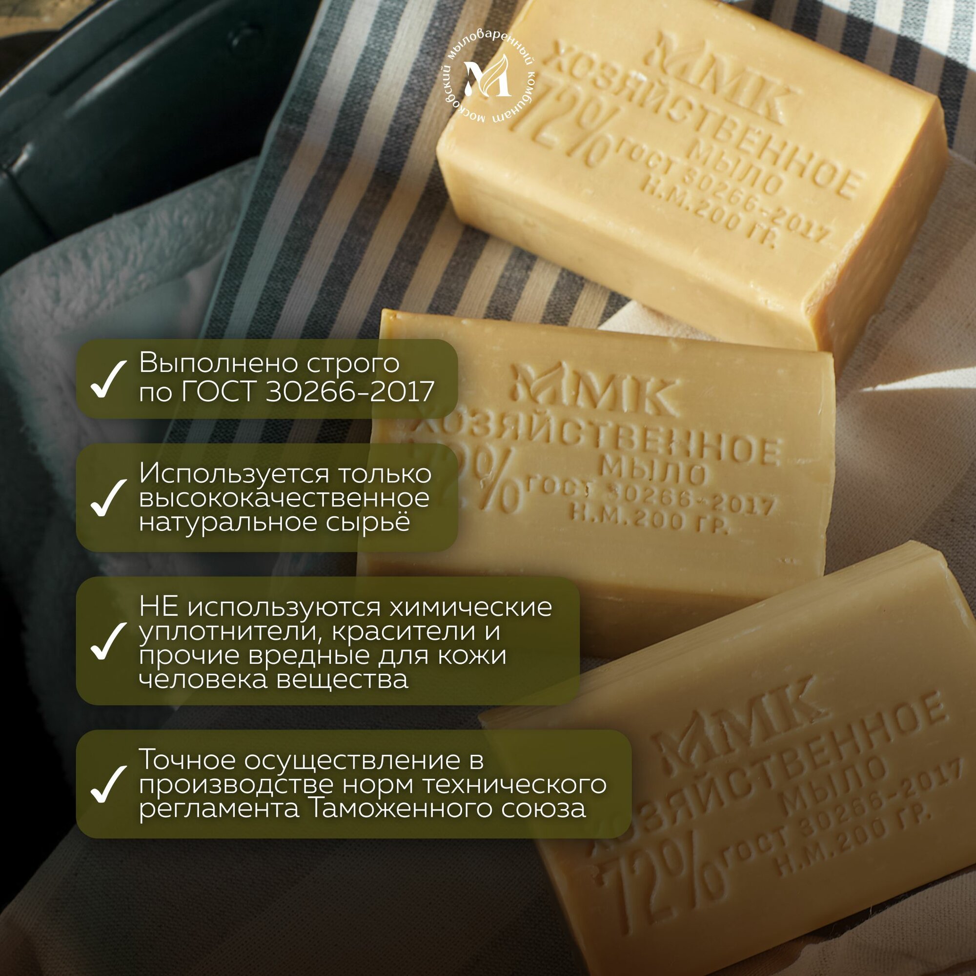 Купить Мыло для стирки хозяйственное 72%, кусковое, твердое. 60 штук. 200 грамм. Московский мыловаренный комбинат