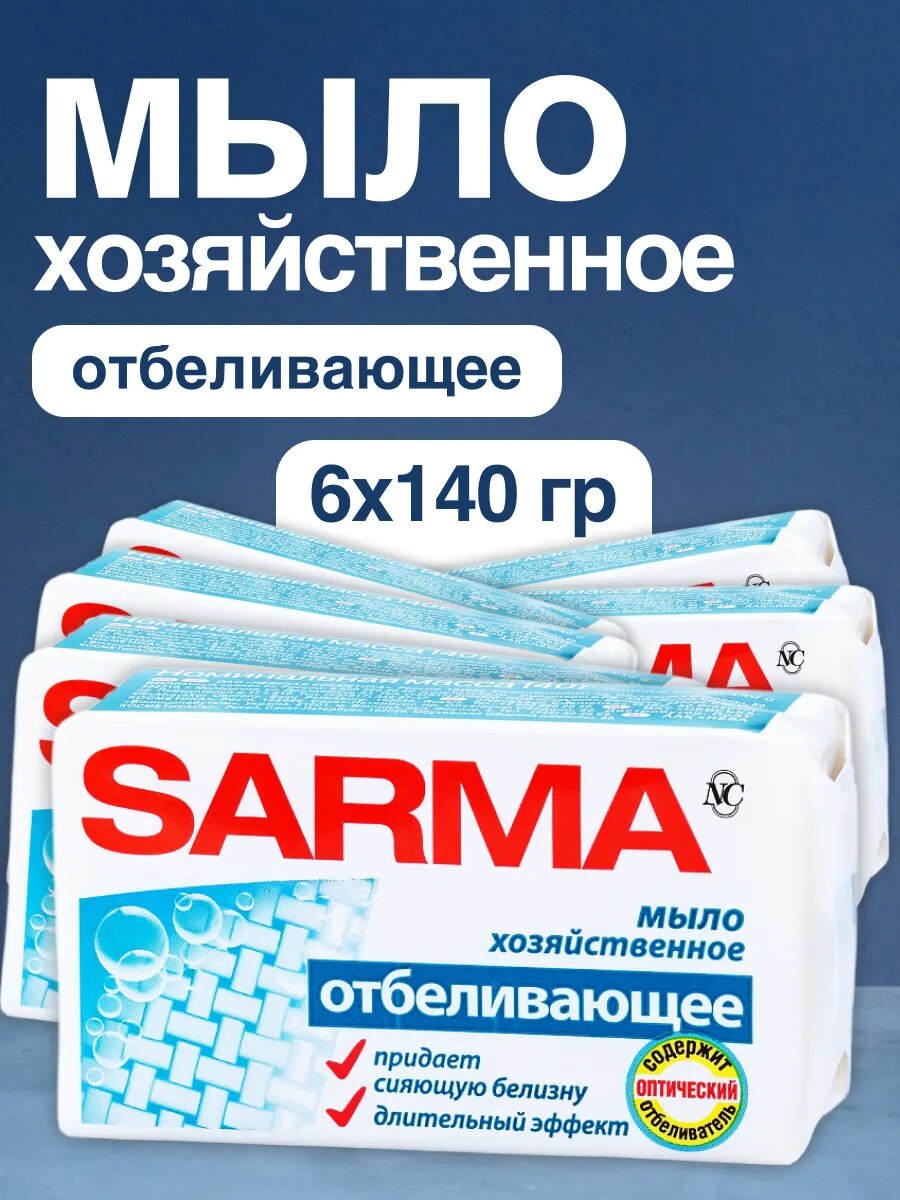 Мыло SARMA хозяйственное отбеливающее 6 шт по 140 г интересное:
