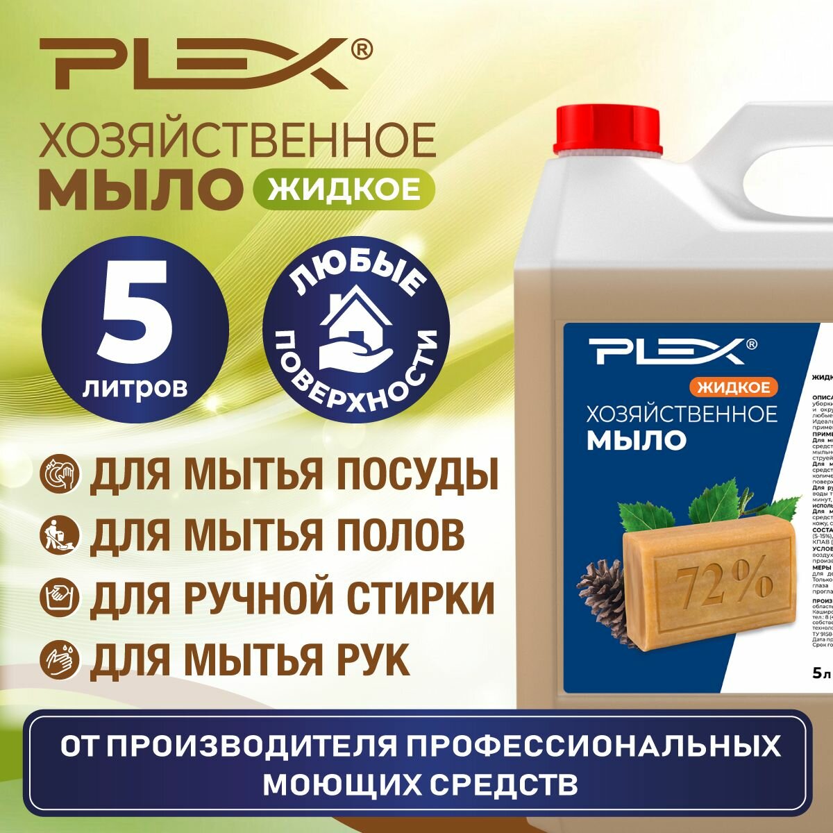 Купить Хозяйственное мыло жидкое универсальное PLEX 5л
