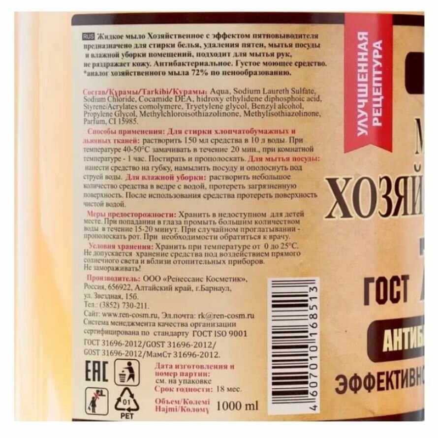Жидкое мыло хозяйственное, 500 мл.