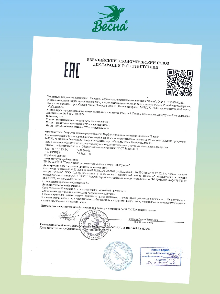 Хозяйственное мыло Весна 72% универсальное 6х140г интересное: