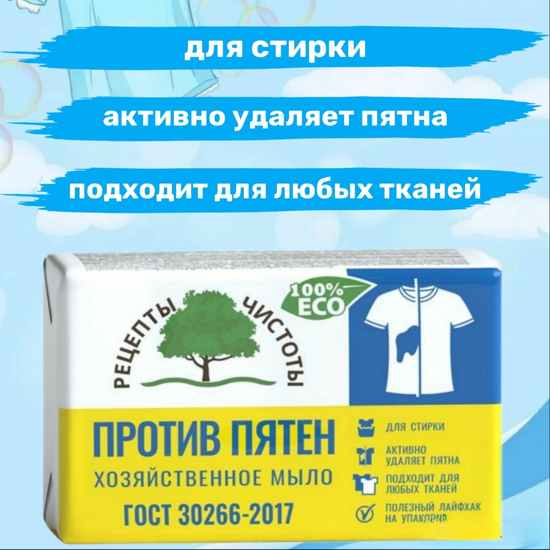 Мыло хозяйственное 72% против пятен 200гр Рецепты чистоты 3шт интересное: