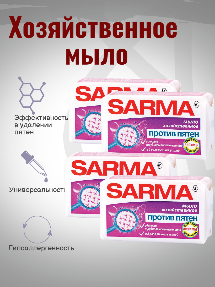Хозяйственное мыло SARMA Против пятен 0.14 кг 4шт интересное: