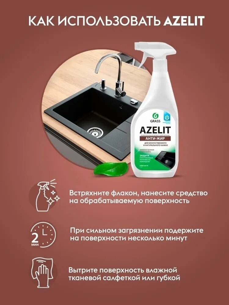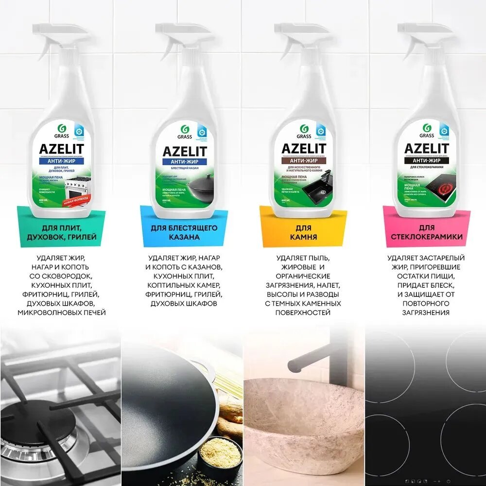 GRASS/ Чистящее средство для кухни Azelit для искусственного и натурального камня, антижир, азелит, 600 мл. интересное: