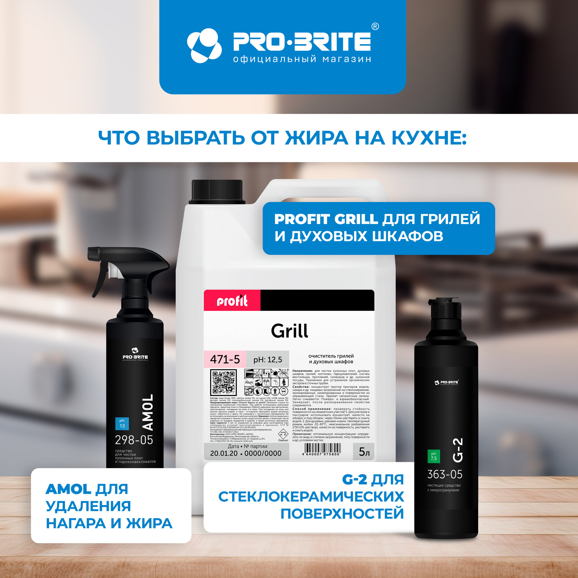 Чистящее средство PRO-BRITE Grill, антижир, 500мл, профессиональное, против жира и нагара интересное: