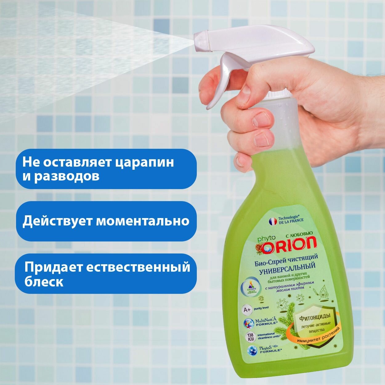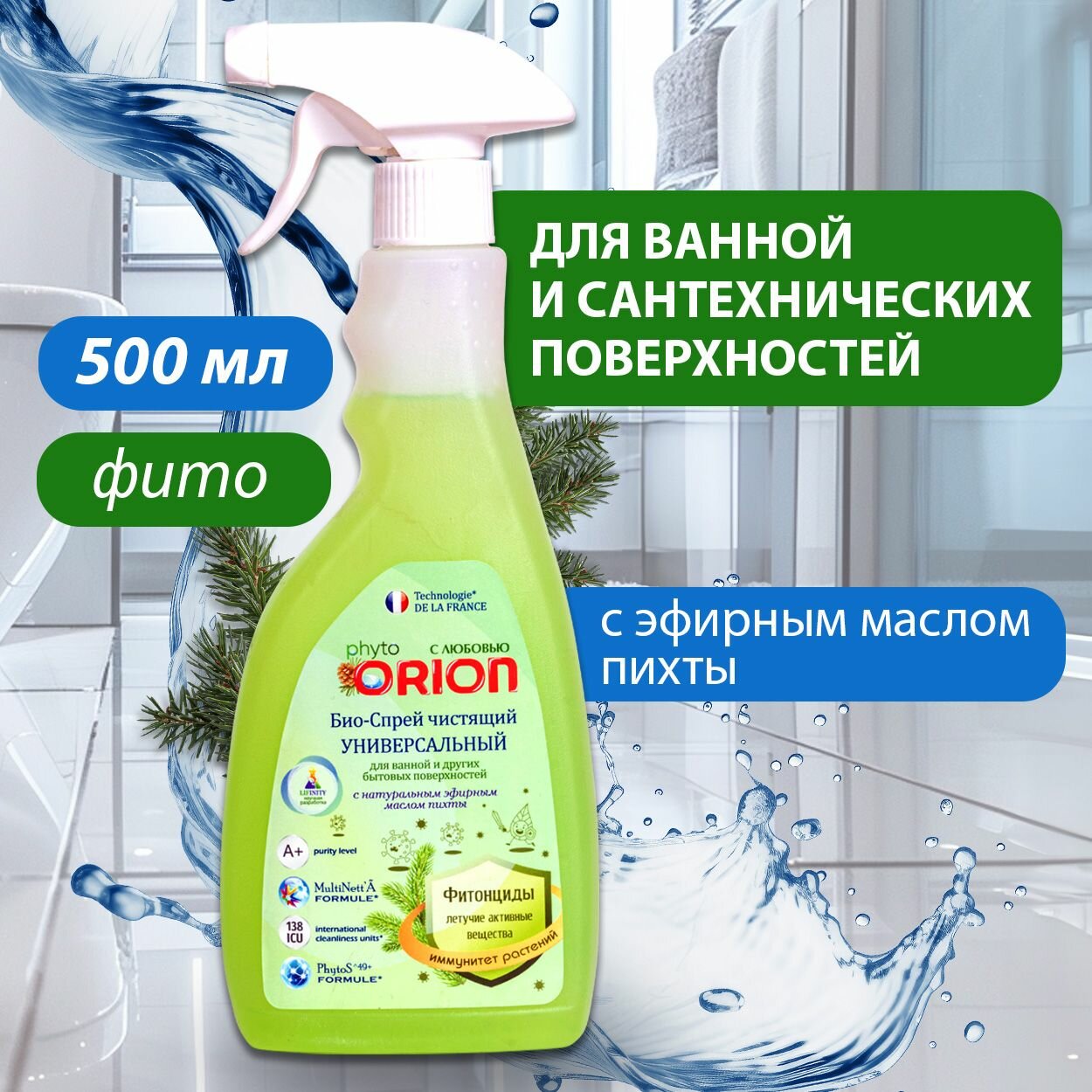 Универсальный спрей для уборки дома Orion 500 мл для сантехнических поверхностей с эфирным маслом пихты интересное: