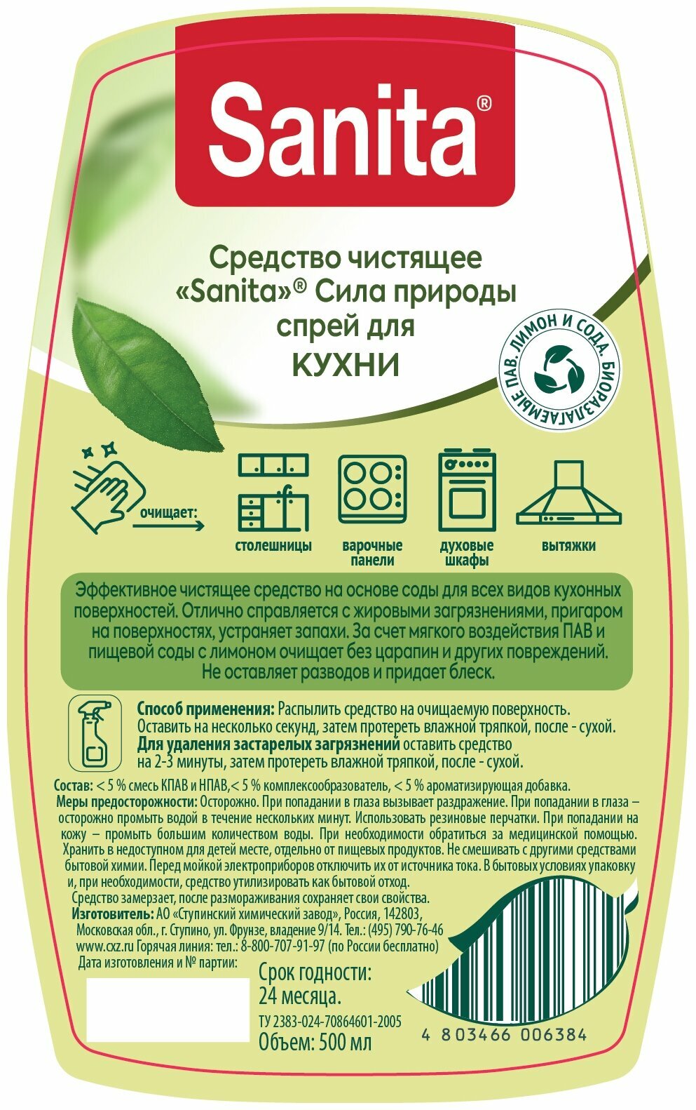 Чистящее Средство Sanita Спрей для Кухни, плит и духовок 500мл. интересное: