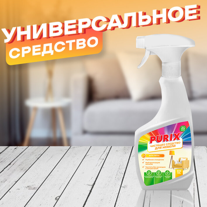 Пятновыводитель спрей, средство Анти-пятна Purix 500 мл для удаления пятен с мягкой мебели, ковров, в салоне автомобиля интересное: