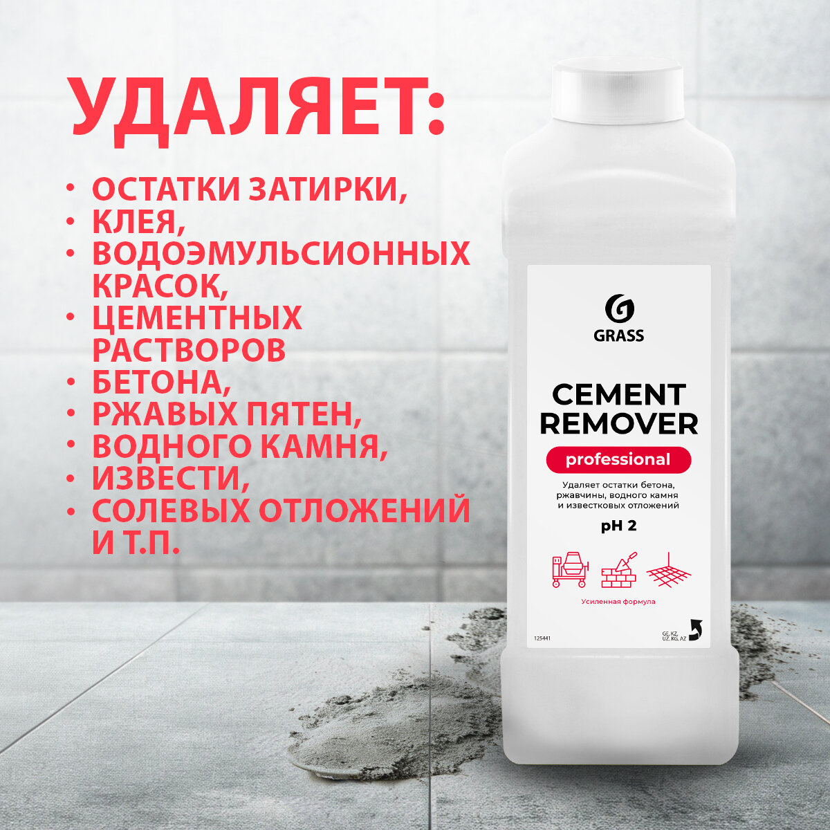 GRASS/ Средство для очистки после ремонта Grass "Cement Remover", уборка после стройки, 1000 мл. интересное: