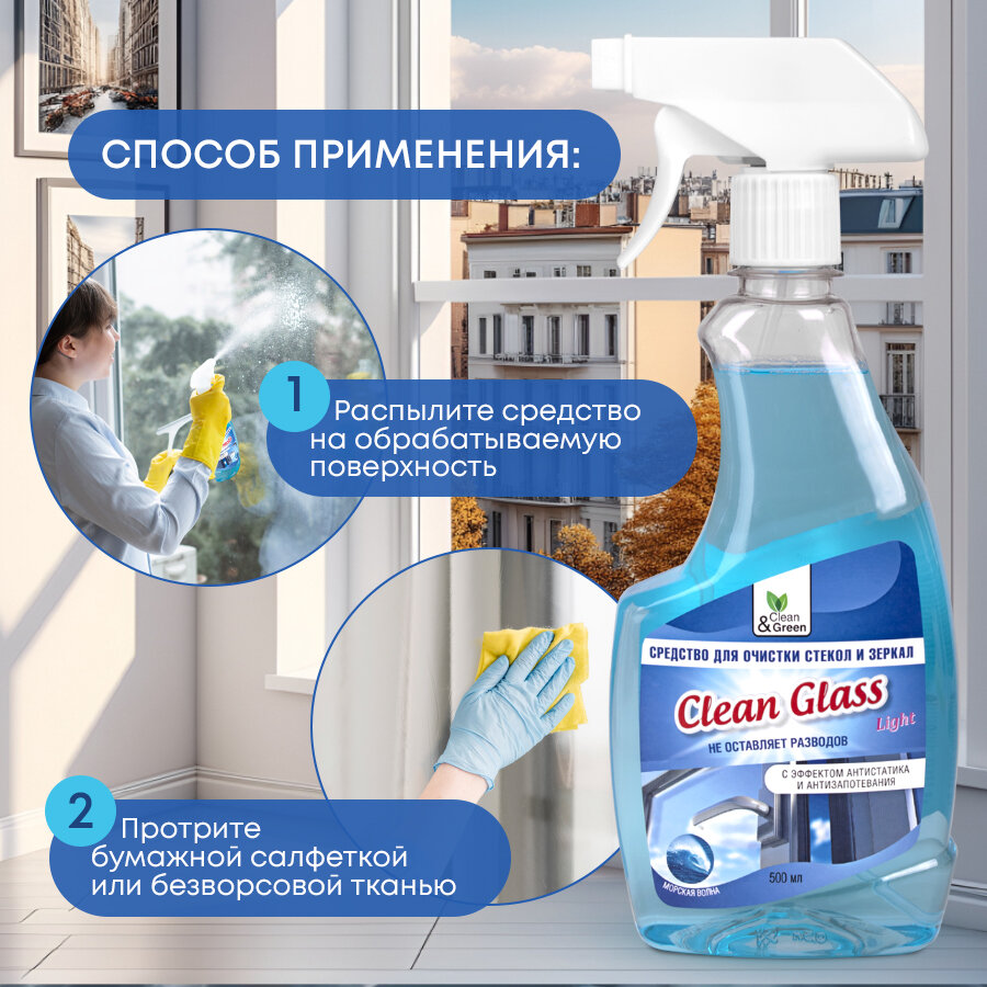 Средство для очистки стекол и зеркал Морская волна (триггер) 500 мл Clean&Green CG8137 интересное:
