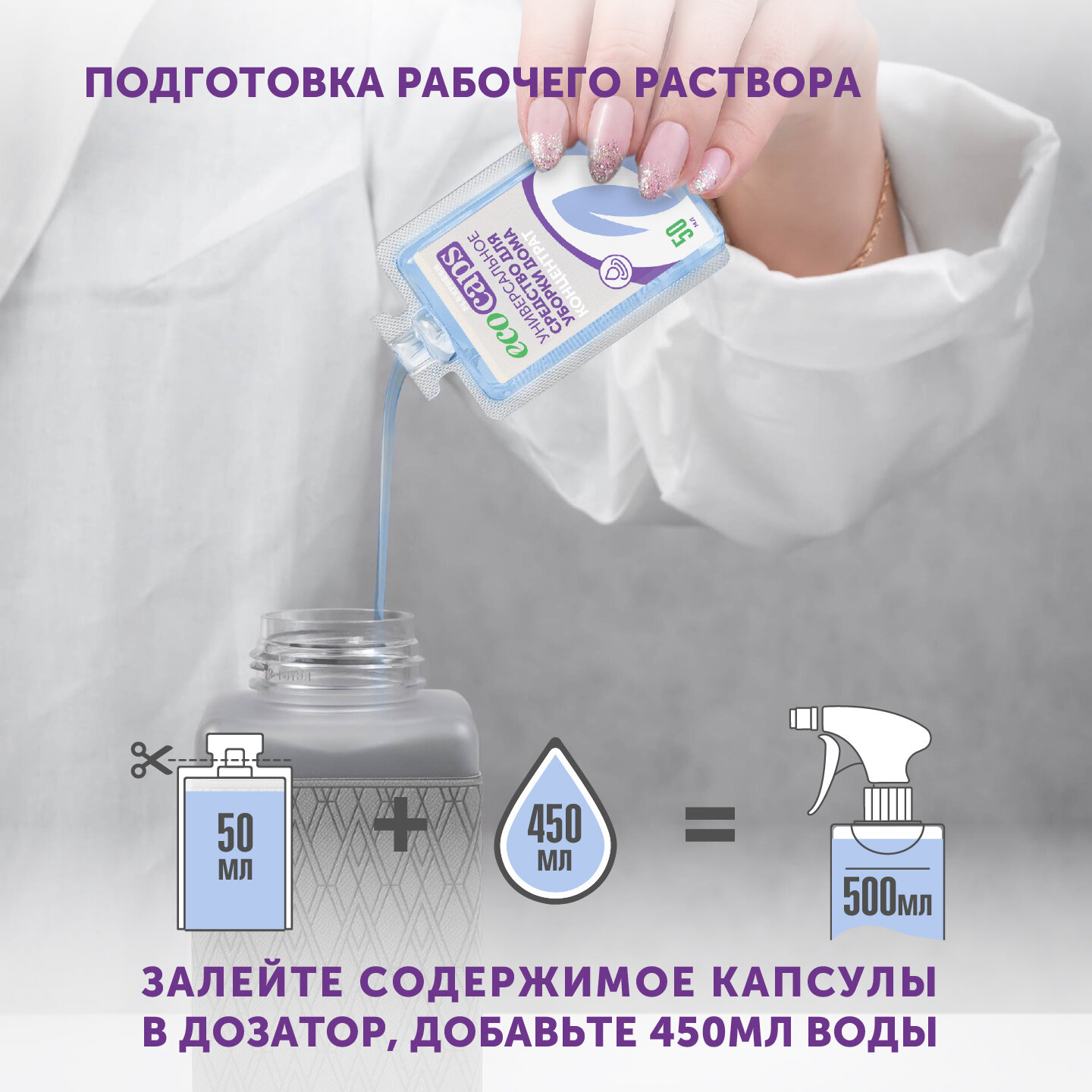 Универсальное средство для уборки дома EcoCaps (концентрат в капсулах) 2 шт + белый флакон 500 мл