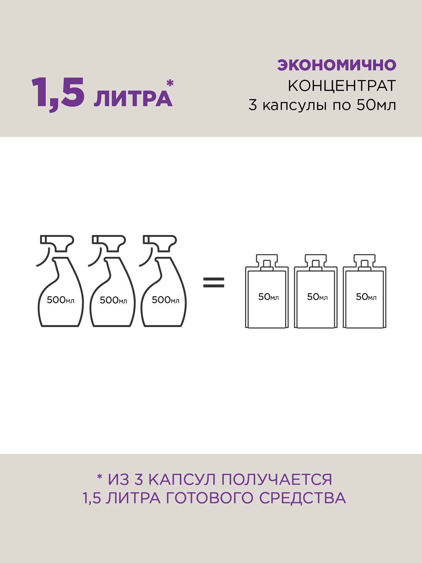 Универсальное средство для уборки дома EcoCaps (концентрат в капсулах) 3 шт + бежевый флакон 500 мл
