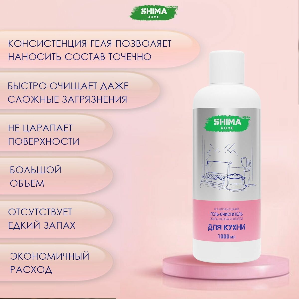 Гель-очиститель жира, нагара и копоти GEL KITCHEN CLEANER 1000 мл интересное: