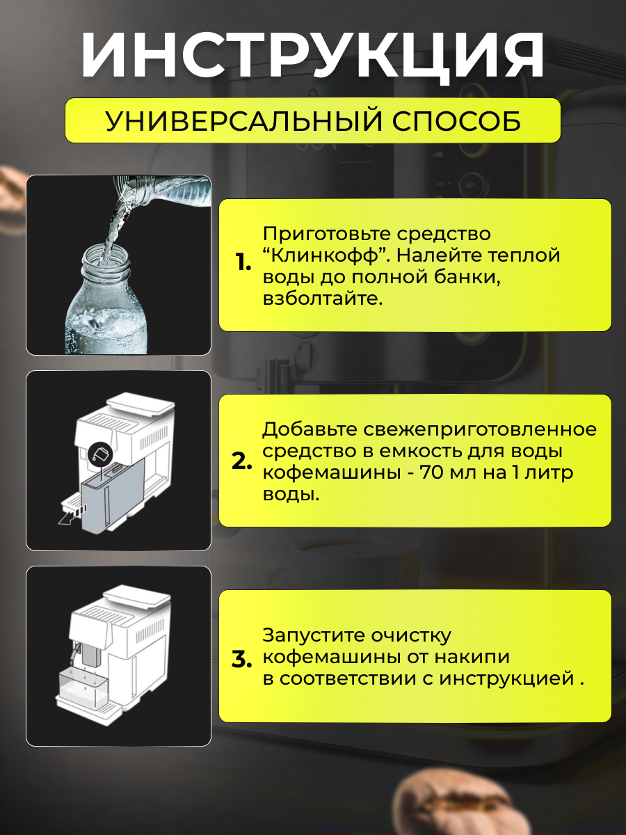 Средство для чистки кофемашин от машин от накипи "Клинкофф" 15 чисток. интересное: