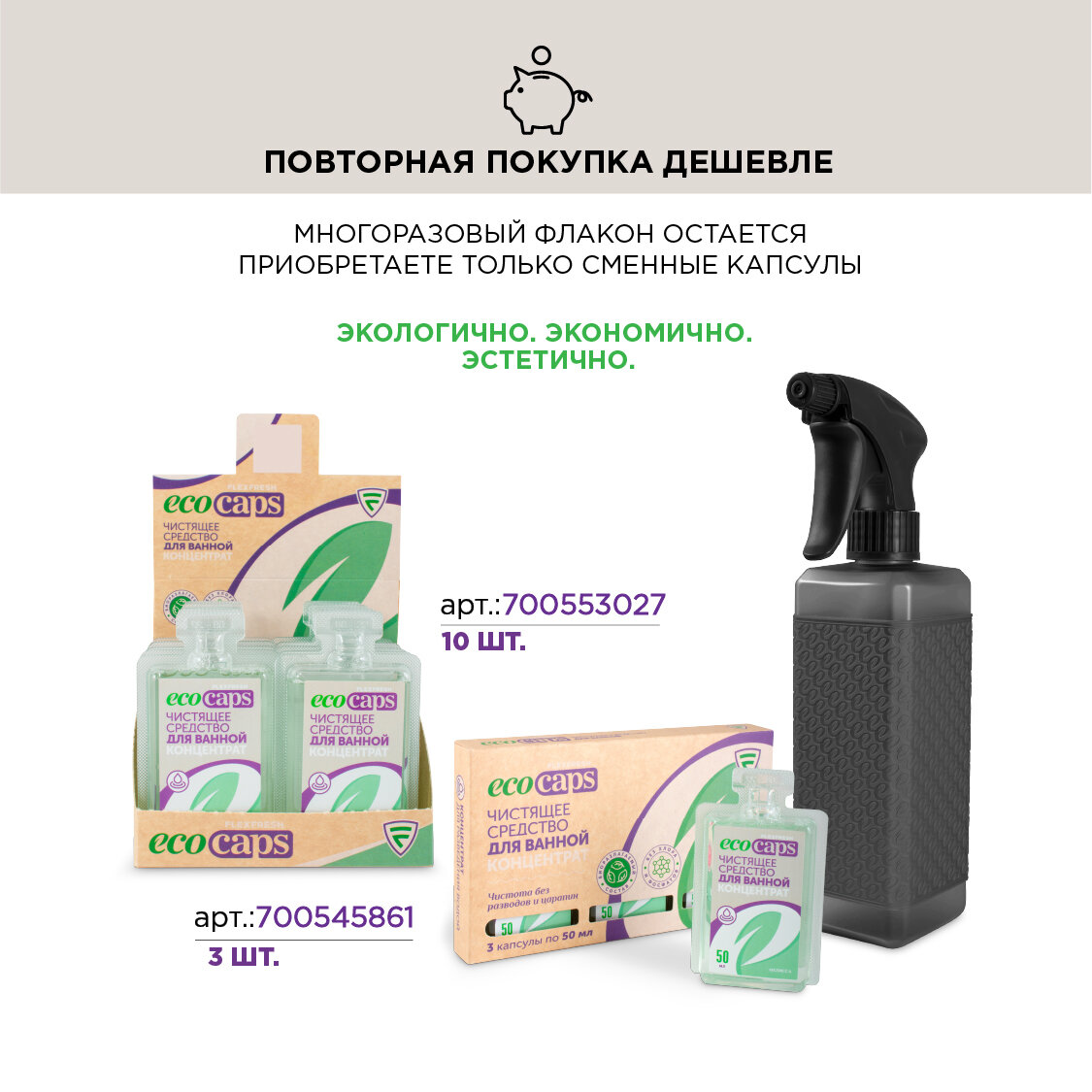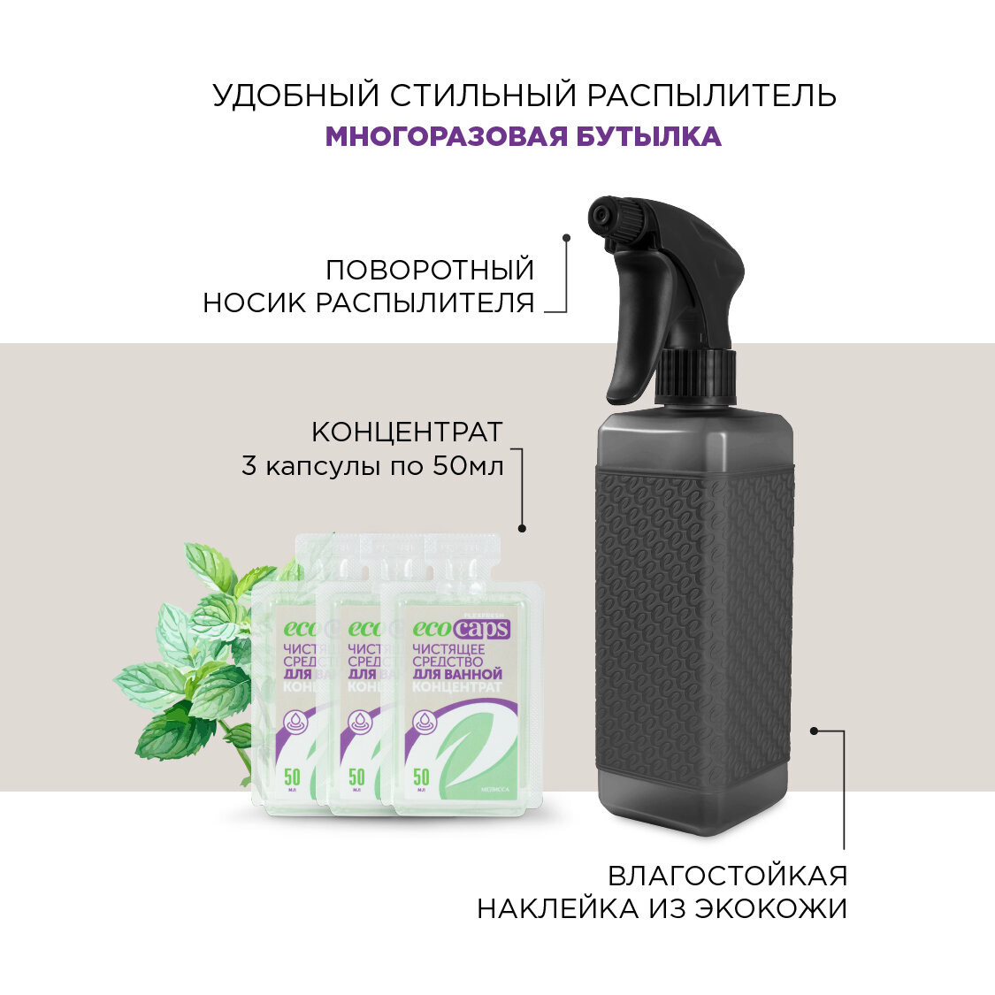 Чистящее средство для ванны и сантехники EcoCaps (концентрат для разведения водой) 3 шт + флакон 500 мл черный интересное: