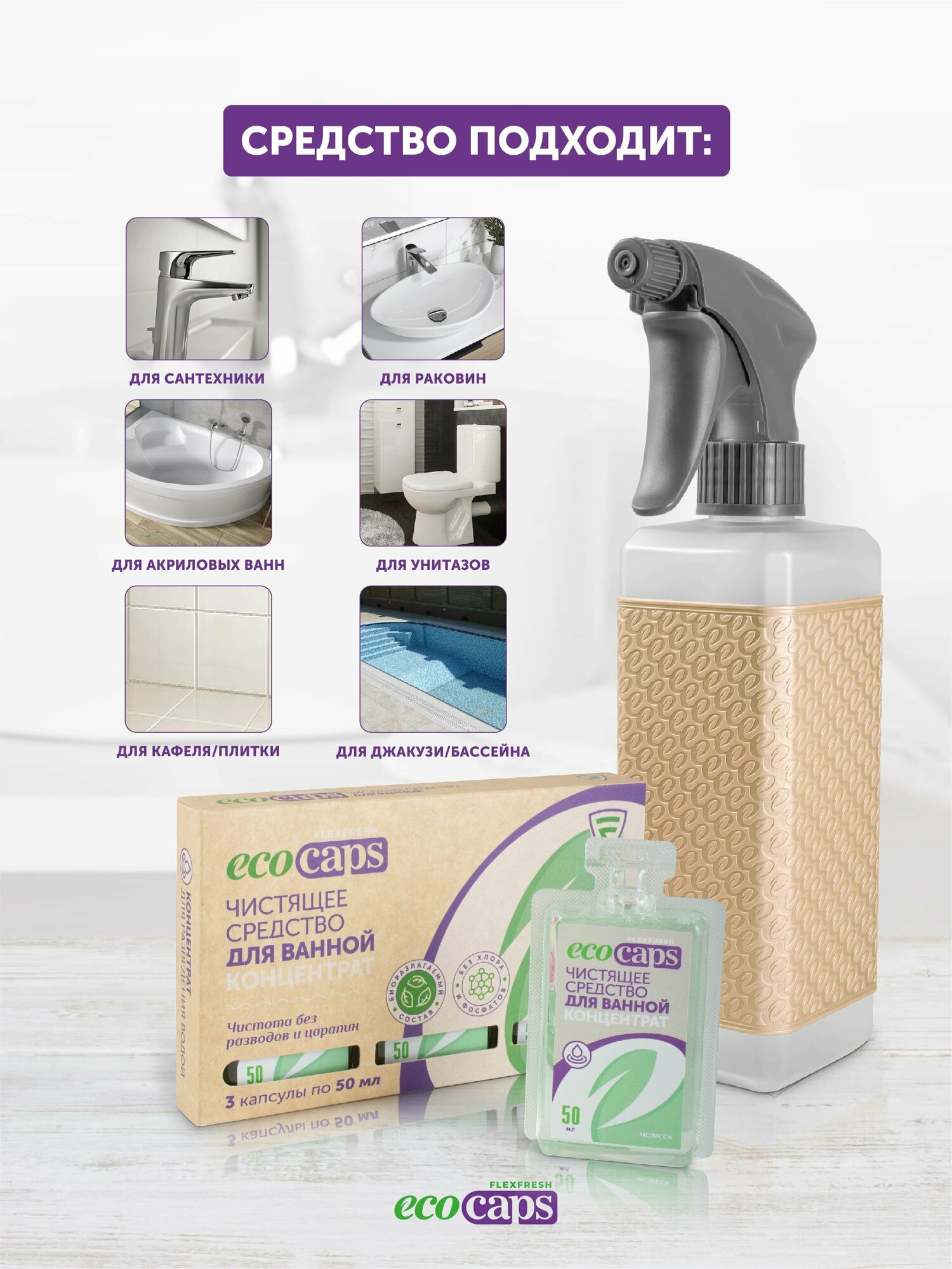 Чистящее средство для ванны и сантехники EcoCaps (концентрат для разведения водой) 3 шт + флакон 500 мл бежевый интересное: