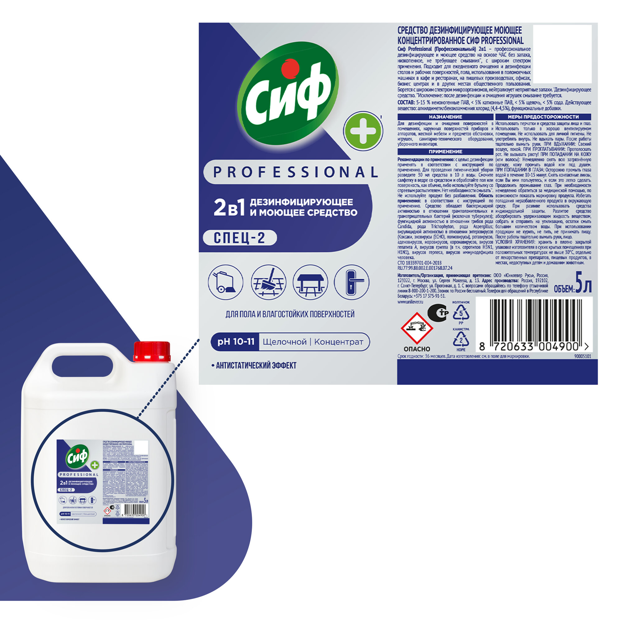 Купить Средство для мытья пола Сиф Professional 2в1 концентрированное профессиональное моющее и дезинфицирующее, 5 л
