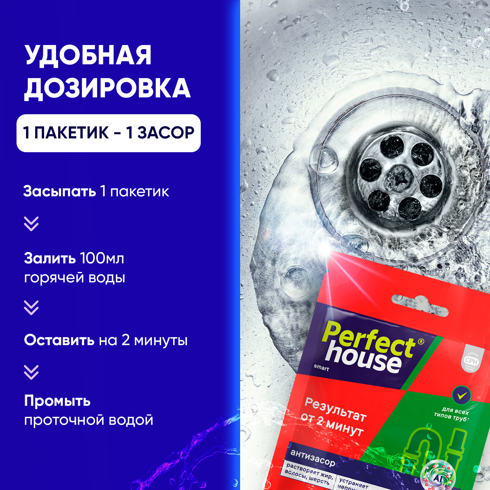 Купить Средство от засоров Perfect House Smart волосогон в гранулах для чистки труб от жира, 6 саше (420 г)
